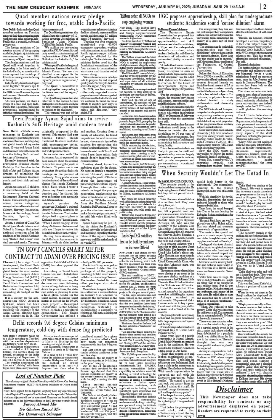 Crescent Kashmir 01-01-2025 Page: 2 January 01, 2025 << First << 2 >> Last >> Page 1Page 2Page 3Page 4Page 5Page 6Page 7Page 8 × Crescent Kashmir 01-01-2025 << First << 2 >> Last >> CK 1CK 2CK 3CK 4CK 5CK 6CK 7CK 8 CK 2