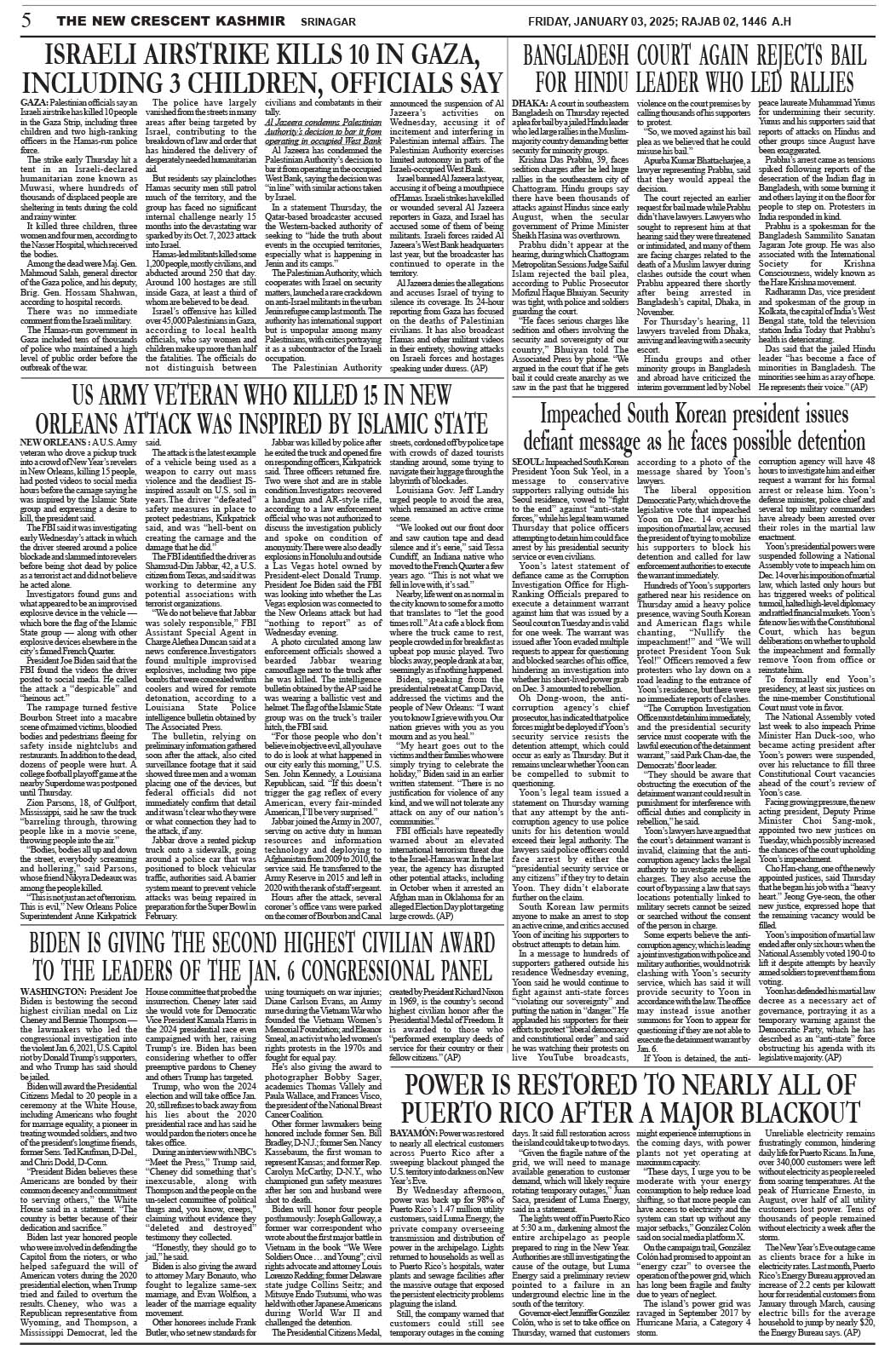 Crescent Kashmir 03-01-2025 Page: 5 January 03, 2025 << First << 5 >> Last >> Page 1Page 2Page 3Page 4Page 5Page 6Page 7Page 8 × Crescent Kashmir 03-01-2025 << First << 5 >> Last >> CK 1CK 2CK 3CK 4CK 5CK 6CK 7CK 8 CK 5