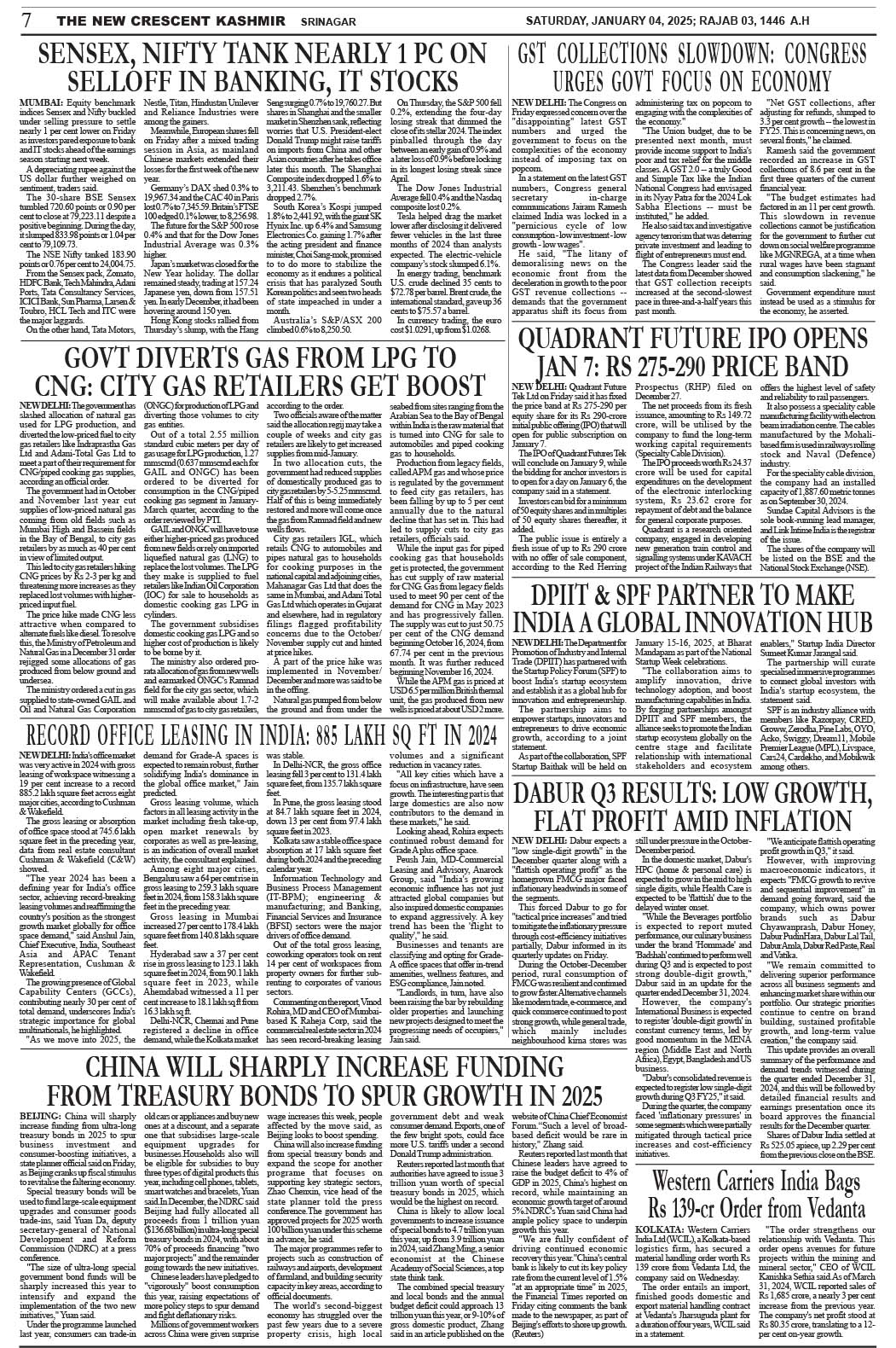 Crescent Kashmir 04-01-2025 Page: 7 January 04, 2025 << First << 7 >> Last >> Page 1Page 2Page 3Page 4Page 5Page 6Page 7Page 8 × Crescent Kashmir 04-01-2025 << First << 7 >> Last >> CK 1CK 2CK 3CK 4CK 5CK 6CK 7CK 8 CK 7