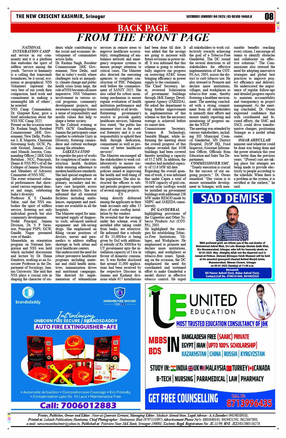 Crescent Kashmir 04-01-2025 Page: 8 January 04, 2025 << First << 8 >> Last >> Page 1Page 2Page 3Page 4Page 5Page 6Page 7Page 8 × Crescent Kashmir 04-01-2025 << First << 8 >> Last >> CK 1CK 2CK 3CK 4CK 5CK 6CK 7CK 8 CK 8