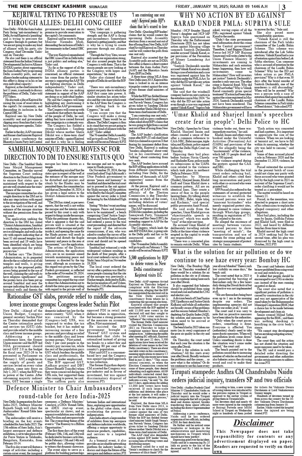 Crescent Kashmir 10-01-2025 Page: 3 January 10, 2025 << First << 3 >> Last >> Page 1Page 2Page 3Page 4Page 5Page 6Page 7Page 8 × Crescent Kashmir 10-01-2025 << First << 3 >> Last >> CK 1CK 2CK 3CK 4CK 5CK 6CK 7CK 8 CK 3