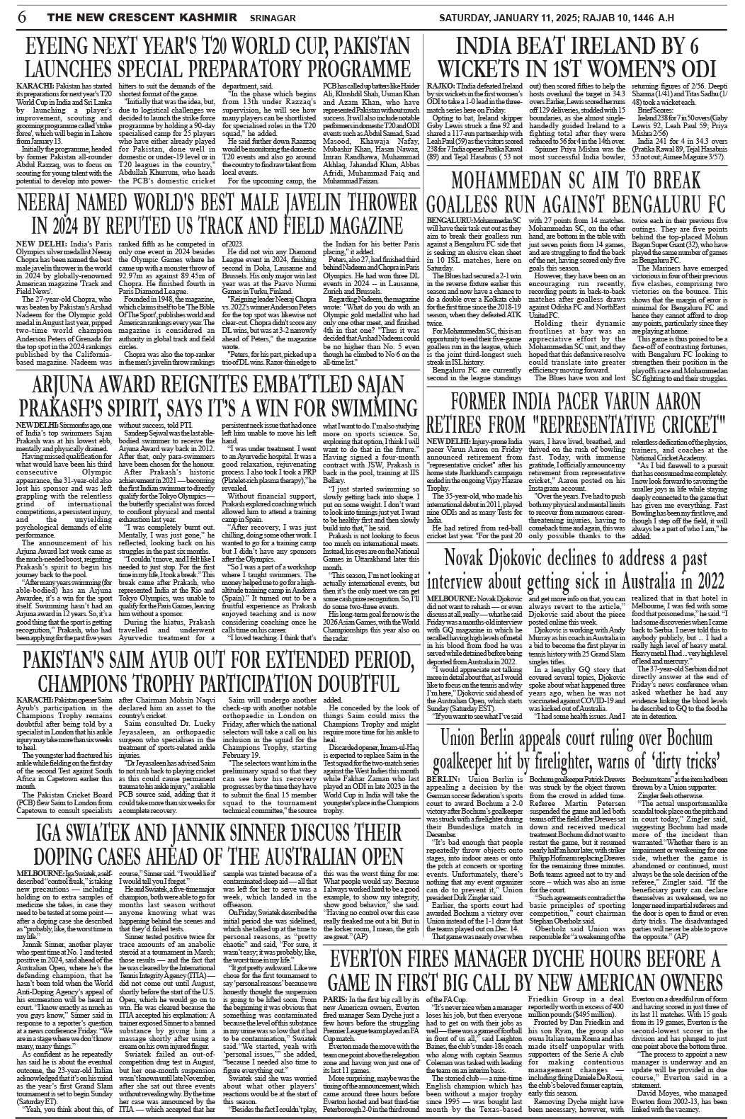 Crescent Kashmir 11-01-2025 Page: 6 January 11, 2025 << First << 6 >> Last >> Page 1Page 2Page 3Page 4Page 5Page 6Page 7Page 8 × Crescent Kashmir 11-01-2025 << First << 6 >> Last >> CK 1CK 2CK 3CK 4CK 5CK 6CK 7CK 8 CK 6
