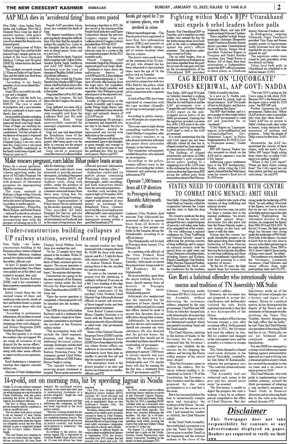 Crescent Kashmir 12-01-2025 Page: 2 January 12, 2025 << First << 2 >> Last >> Page 1Page 2Page 3Page 4Page 5Page 6Page 7Page 8 × Crescent Kashmir 12-01-2025 << First << 2 >> Last >> CK 1CK 2CK 3CK 4CK 5CK 6CK 7CK 8 CK 2