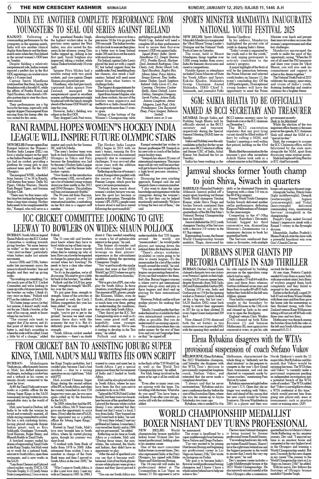 Crescent Kashmir 12-01-2025 Page: 6 January 12, 2025 << First << 6 >> Last >> Page 1Page 2Page 3Page 4Page 5Page 6Page 7Page 8 × Crescent Kashmir 12-01-2025 << First << 6 >> Last >> CK 1CK 2CK 3CK 4CK 5CK 6CK 7CK 8 CK 6