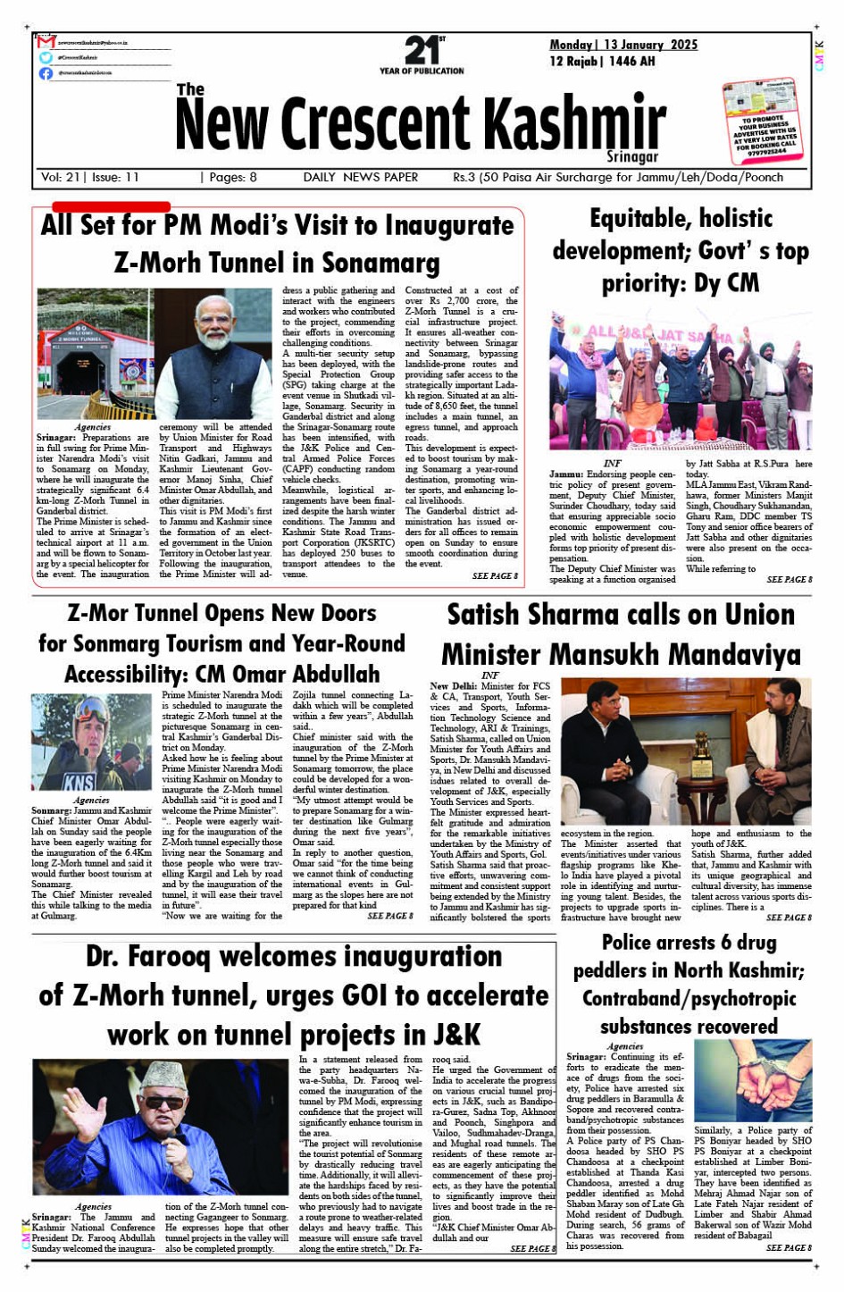 Crescent Kashmir 13-01-2025 Page: 3 January 13, 2025 << First << 3 >> Last >> Page 1Page 2Page 3Page 4Page 5Page 6Page 7Page 8 × Crescent Kashmir 13-01-2025 << First << 3 >> Last >> CK 1CK 2CK 3CK 4CK 5CK 6CK 7CK 8 CK 3