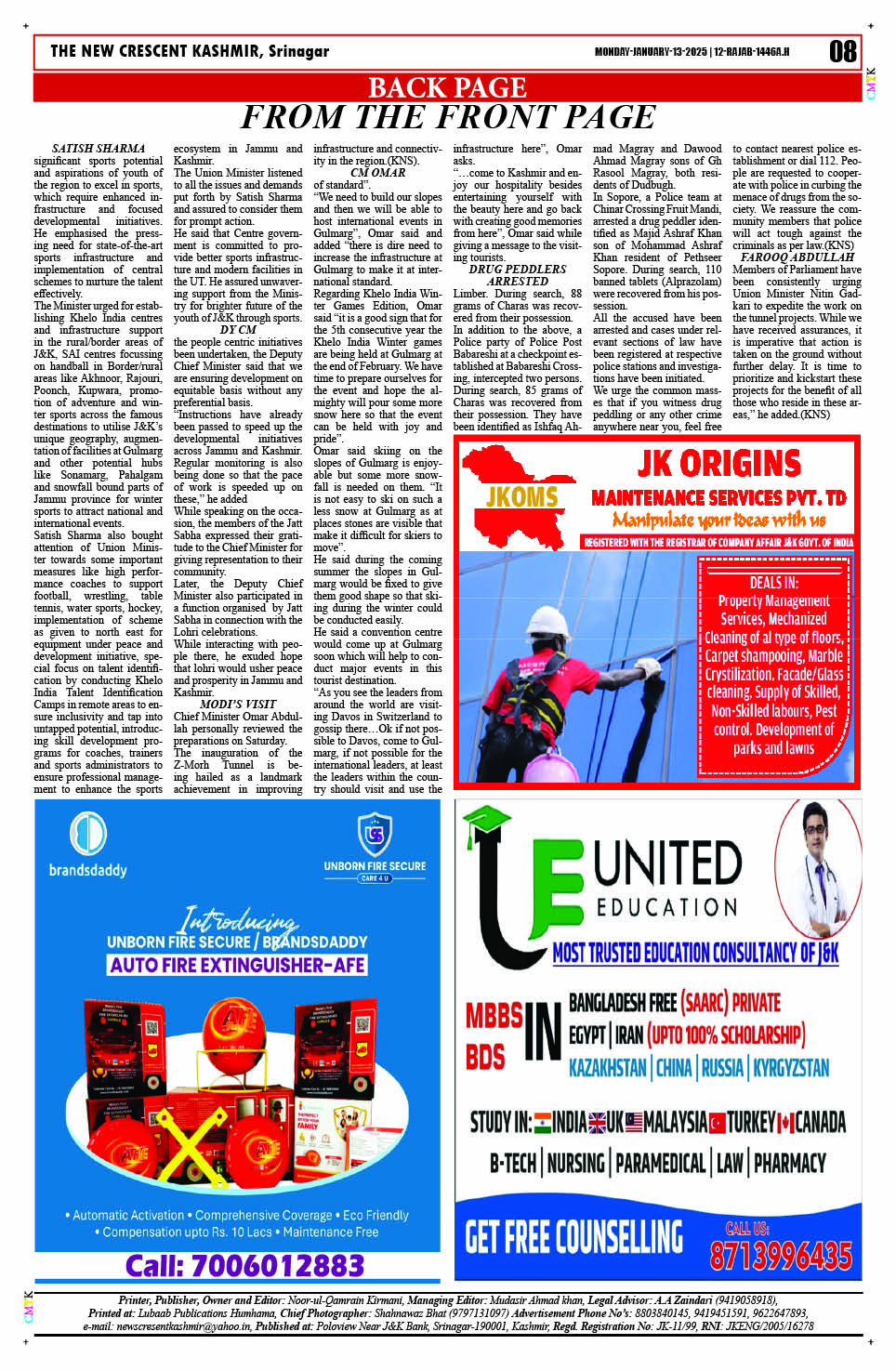 Crescent Kashmir 13-01-2025 Page: 8 January 13, 2025 << First << 8 >> Last >> Page 1Page 2Page 3Page 4Page 5Page 6Page 7Page 8 × Crescent Kashmir 13-01-2025 << First << 8 >> Last >> CK 1CK 2CK 3CK 4CK 5CK 6CK 7CK 8 CK 8