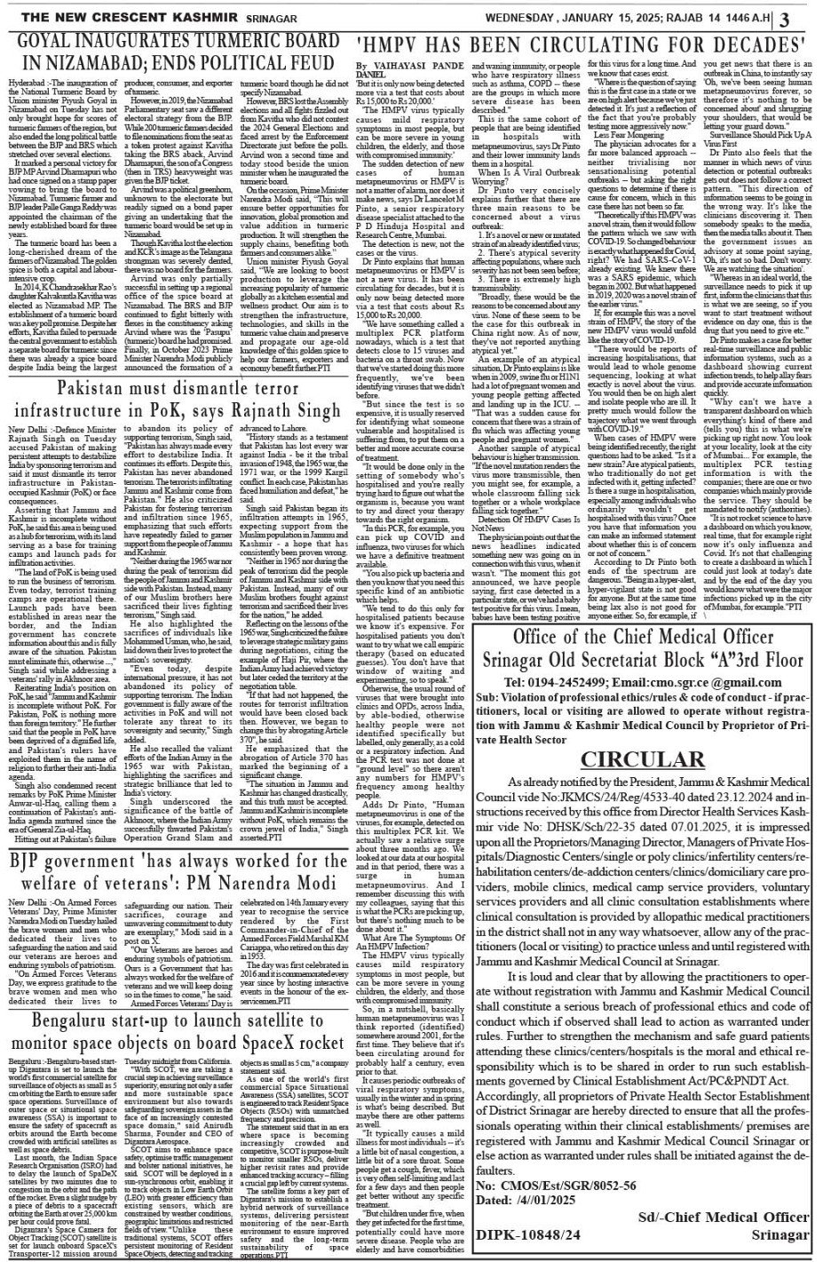 Crescent Kashmir 15-01-2025 Page: 3 January 15, 2025 << First << 3 >> Last >> Page 1Page 2Page 3Page 4Page 5Page 6Page 7Page 8 × Crescent Kashmir 15-01-2025 << First << 3 >> Last >> CK 1CK 2CK 3CK 4CK 5CK 6CK 7CK 8 CK 3