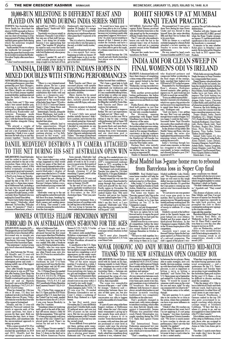 Crescent Kashmir 15-01-2025 Page: 6 January 15, 2025 << First << 6 >> Last >> Page 1Page 2Page 3Page 4Page 5Page 6Page 7Page 8 × Crescent Kashmir 15-01-2025 << First << 6 >> Last >> CK 1CK 2CK 3CK 4CK 5CK 6CK 7CK 8 CK 6