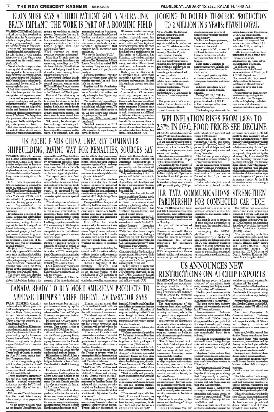 Crescent Kashmir 15-01-2025 Page: 7 January 15, 2025 << First << 7 >> Last >> Page 1Page 2Page 3Page 4Page 5Page 6Page 7Page 8 × Crescent Kashmir 15-01-2025 << First << 7 >> Last >> CK 1CK 2CK 3CK 4CK 5CK 6CK 7CK 8 CK 7