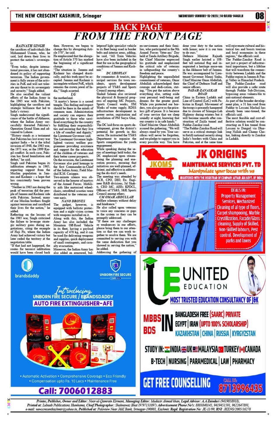 Crescent Kashmir 15-01-2025 Page: 8 January 15, 2025 << First << 8 >> Last >> Page 1Page 2Page 3Page 4Page 5Page 6Page 7Page 8 × Crescent Kashmir 15-01-2025 << First << 8 >> Last >> CK 1CK 2CK 3CK 4CK 5CK 6CK 7CK 8 CK 8