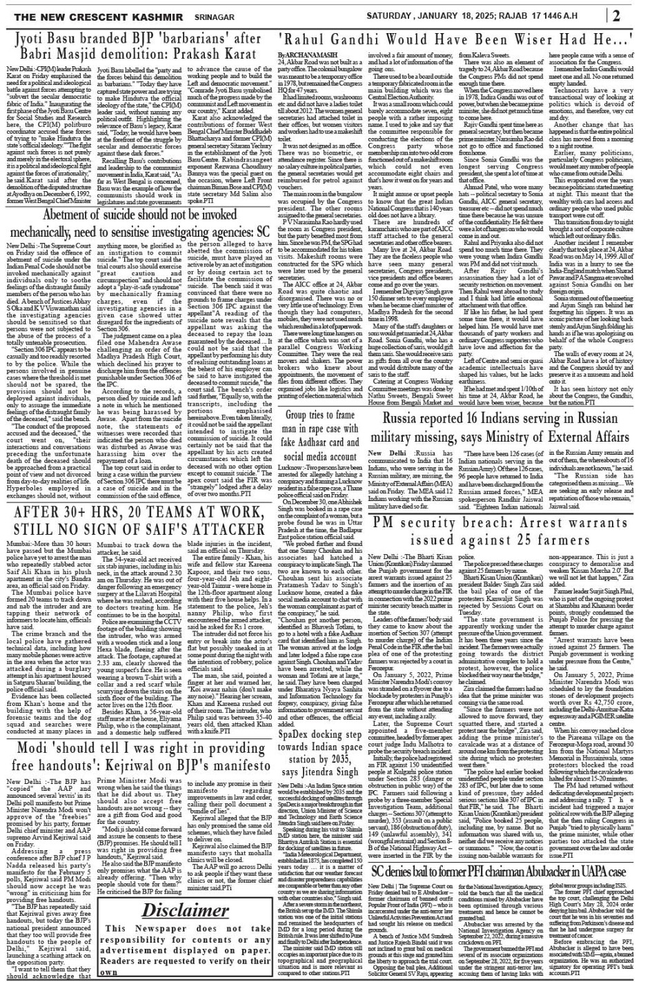 Crescent Kashmir 18-01-2025 Page: 2 January 18, 2025 << First << 2 >> Last >> Page 1Page 2Page 3Page 4Page 5Page 6Page 7Page 8 × Crescent Kashmir 18-01-2025 << First << 2 >> Last >> CK 1CK 2CK 3CK 4CK 5CK 6CK 7CK 8 CK 2