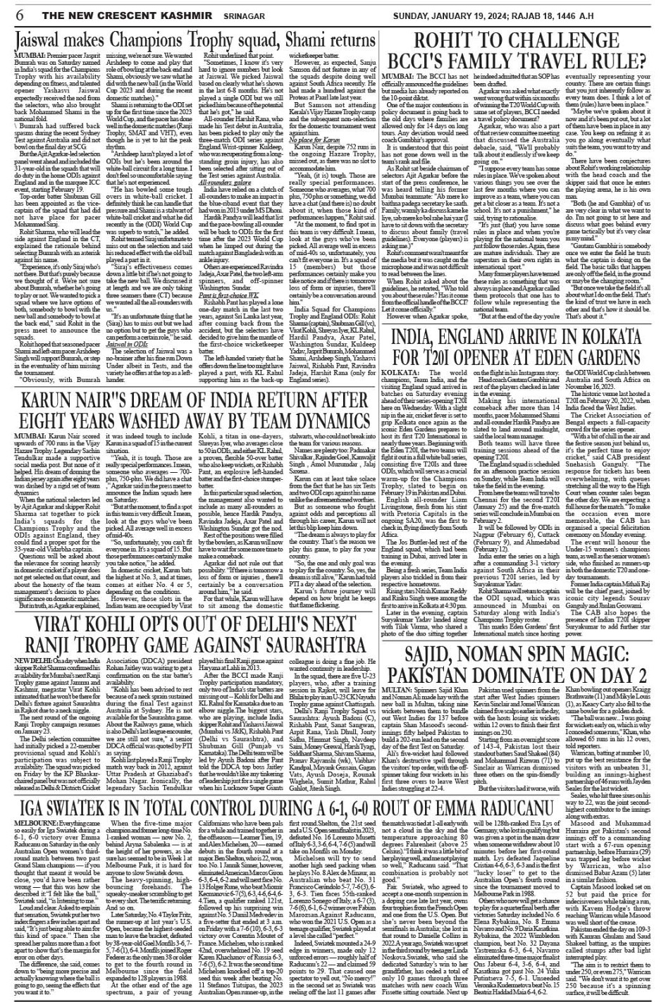 Crescent Kashmir 19-01-2025 Page: 6 January 19, 2025 << First << 6 >> Last >> Page 1Page 2Page 3Page 4Page 5Page 6Page 7Page 8 × Crescent Kashmir 19-01-2025 << First << 6 >> Last >> CK 1CK 2CK 3CK 4CK 5CK 6CK 7CK 8 CK 6