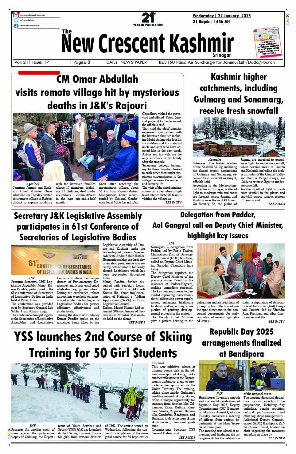 Crescent Kashmir 22-01-2025 January 22, 2025 << First << 1 >> Last >> Page 1Page 2Page 3Page 4Page 5Page 6Page 7Page 8 × Crescent Kashmir 22-01-2025 << First << 1 >> Last >> CK 1CK 2CK 3CK 4CK 5CK 6CK 7CK 8 CK 1