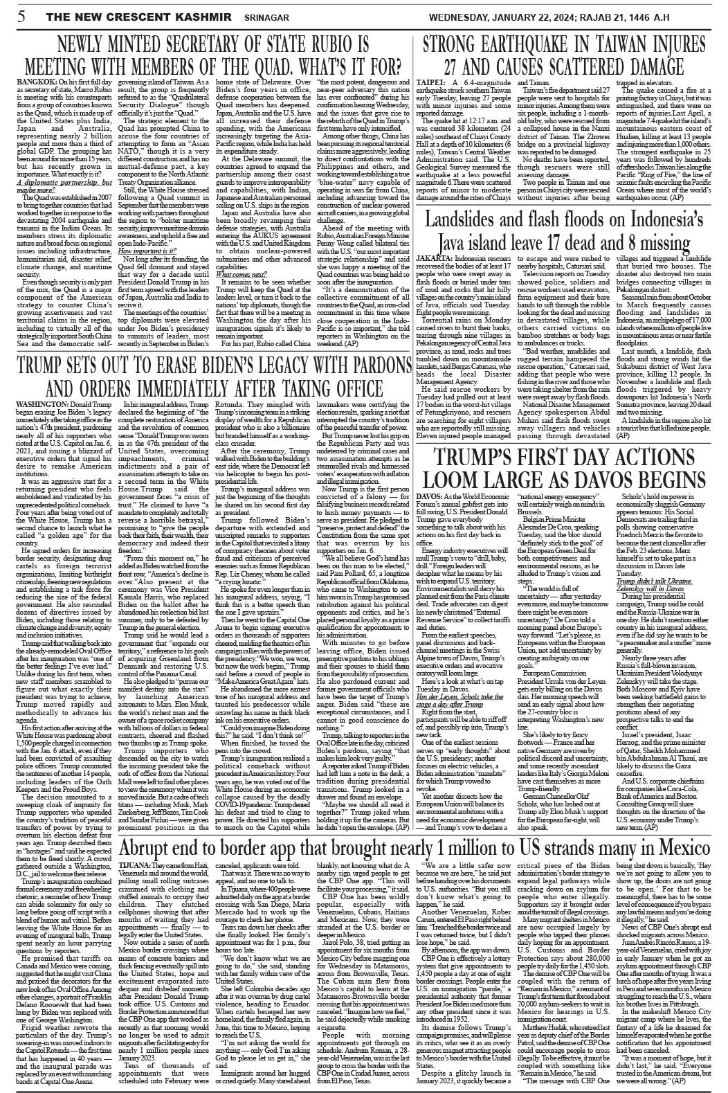 Crescent Kashmir 22-01-2025 Page: 5 January 22, 2025 << First << 5 >> Last >> Page 1Page 2Page 3Page 4Page 5Page 6Page 7Page 8 × Crescent Kashmir 22-01-2025 << First << 5 >> Last >> CK 1CK 2CK 3CK 4CK 5CK 6CK 7CK 8 CK 5