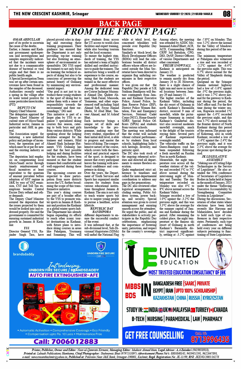 Crescent Kashmir 22-01-2025 Page: 8 January 22, 2025 << First << 8 >> Last >> Page 1Page 2Page 3Page 4Page 5Page 6Page 7Page 8 × Crescent Kashmir 22-01-2025 << First << 8 >> Last >> CK 1CK 2CK 3CK 4CK 5CK 6CK 7CK 8 CK 8