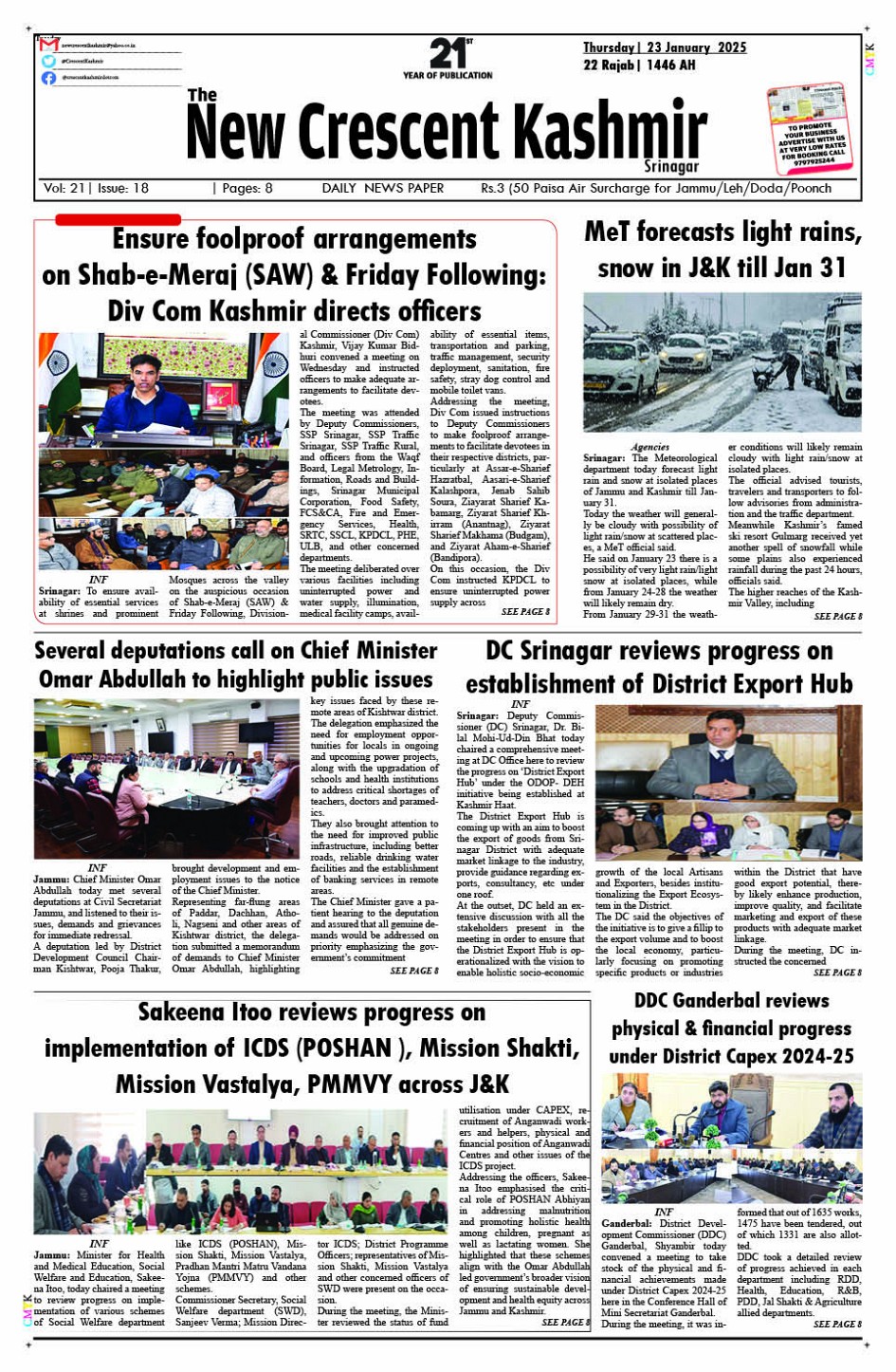 Crescent Kashmir 23-01-2025 January 23, 2025 << First << 1 >> Last >> Page 1Page 2Page 3Page 4Page 5Page 6Page 7Page 8 × Crescent Kashmir 23-01-2025 << First << 1 >> Last >> CK 1CK 2CK 3CK 4CK 5CK 6CK 7CK 8 CK 1