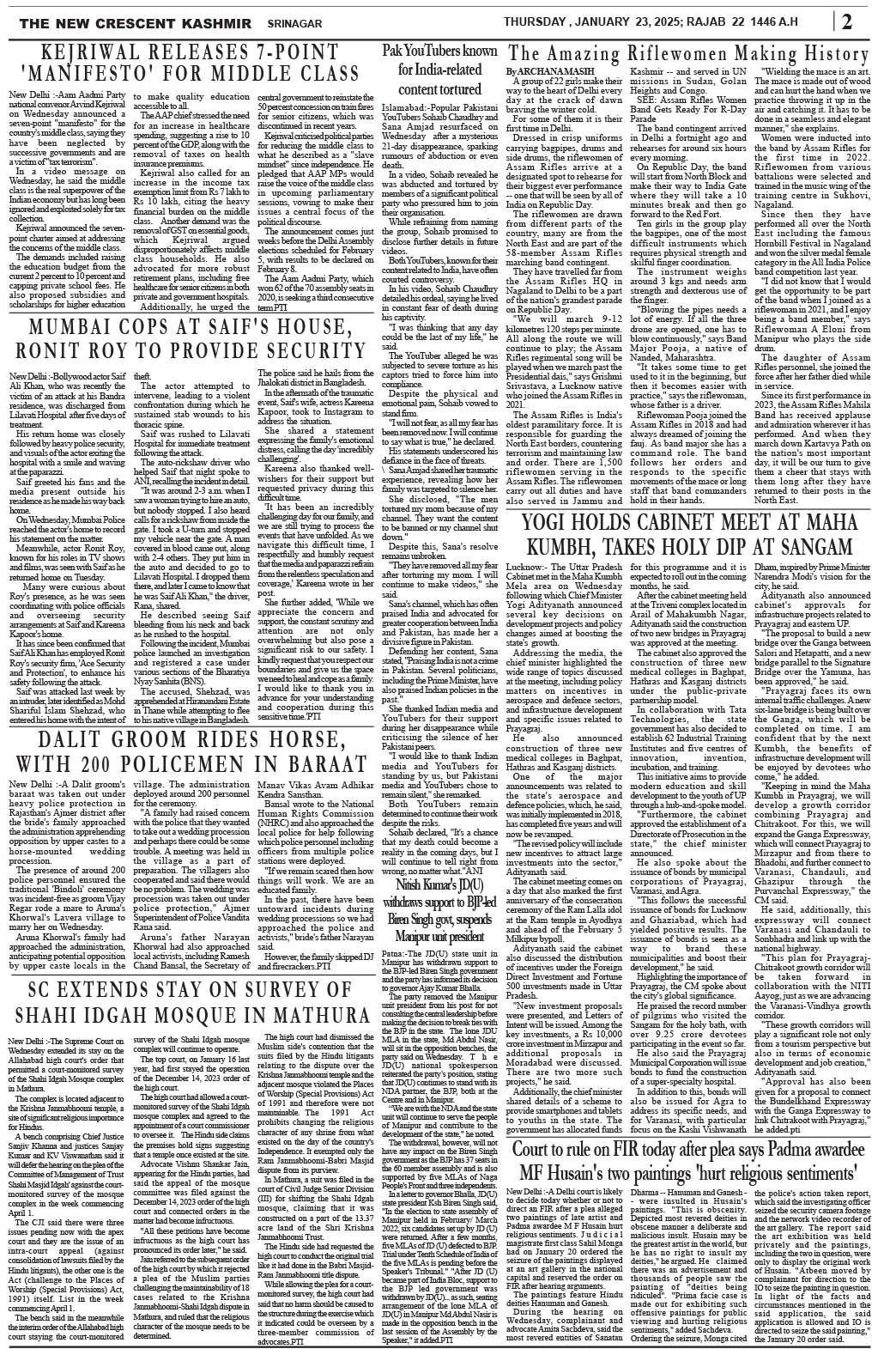 Crescent Kashmir 23-01-2025 Page: 2 January 23, 2025 << First << 2 >> Last >> Page 1Page 2Page 3Page 4Page 5Page 6Page 7Page 8 × Crescent Kashmir 23-01-2025 << First << 2 >> Last >> CK 1CK 2CK 3CK 4CK 5CK 6CK 7CK 8 CK 2