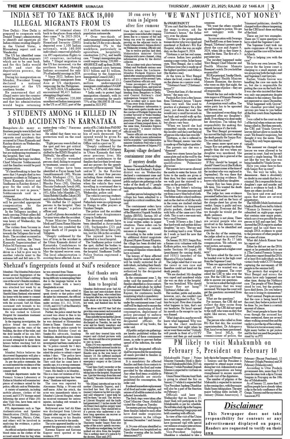Crescent Kashmir 23-01-2025 Page: 3 January 23, 2025 << First << 3 >> Last >> Page 1Page 2Page 3Page 4Page 5Page 6Page 7Page 8 × Crescent Kashmir 23-01-2025 << First << 3 >> Last >> CK 1CK 2CK 3CK 4CK 5CK 6CK 7CK 8 CK 3