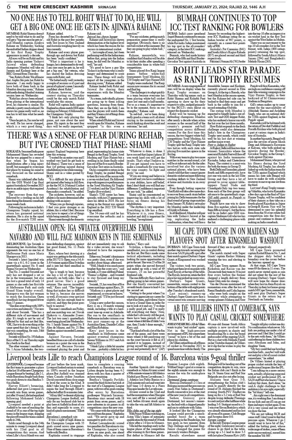Crescent Kashmir 23-01-2025 Page: 6 January 23, 2025 << First << 6 >> Last >> Page 1Page 2Page 3Page 4Page 5Page 6Page 7Page 8 × Crescent Kashmir 23-01-2025 << First << 6 >> Last >> CK 1CK 2CK 3CK 4CK 5CK 6CK 7CK 8 CK 6