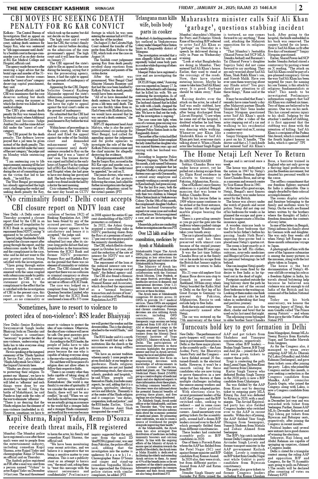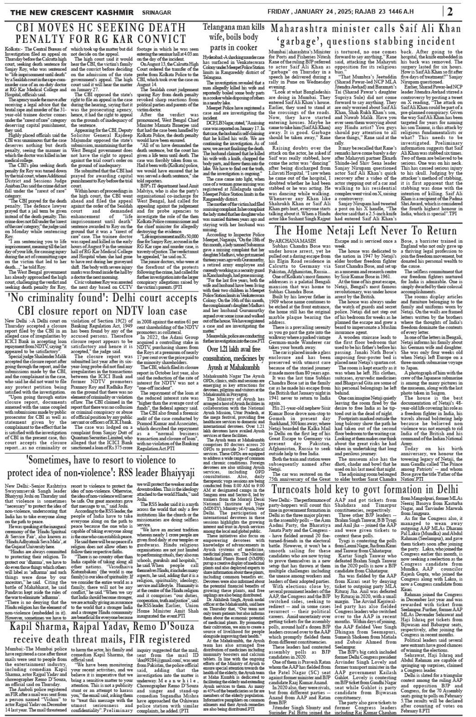 Crescent Kashmir 24-01-2025 Page: 2 January 24, 2025 << First << 2 >> Last >> Page 1Page 2Page 3Page 4Page 5Page 6Page 7Page 8 × Crescent Kashmir 24-01-2025 << First << 2 >> Last >> CK 1CK 2CK 3CK 4CK 5CK 6CK 7CK 8 CK 2