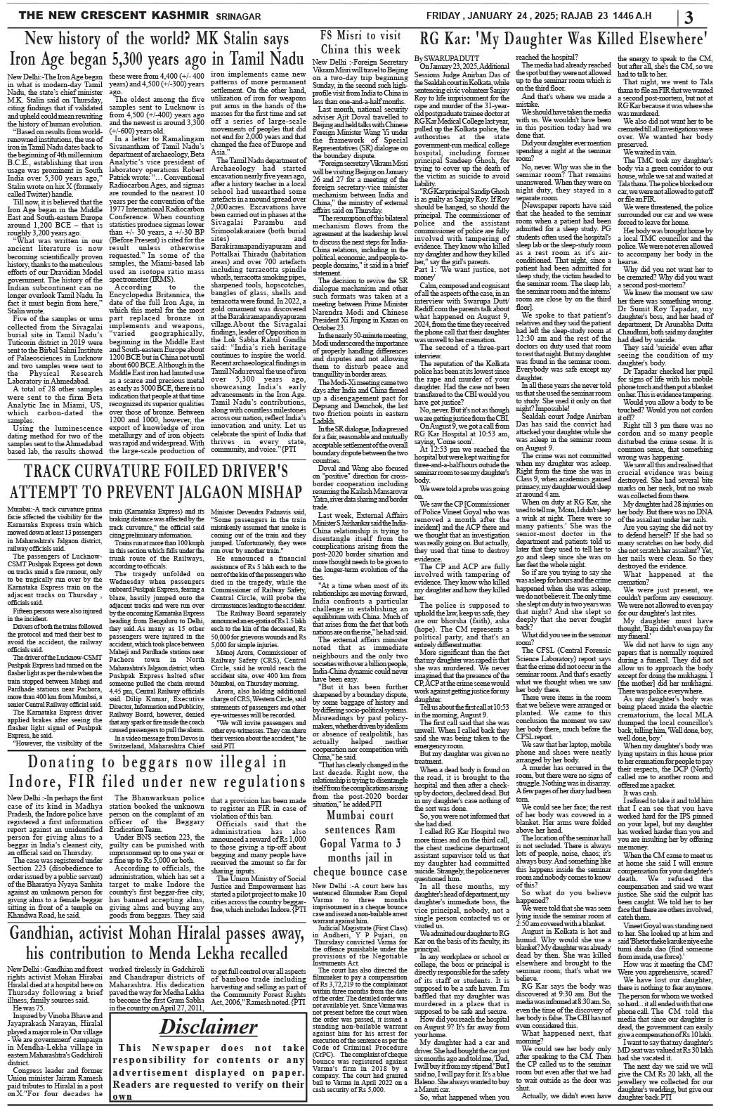 Crescent Kashmir 24-01-2025 Page: 3 January 24, 2025 << First << 3 >> Last >> Page 1Page 2Page 3Page 4Page 5Page 6Page 7Page 8 × Crescent Kashmir 24-01-2025 << First << 3 >> Last >> CK 1CK 2CK 3CK 4CK 5CK 6CK 7CK 8 CK 3
