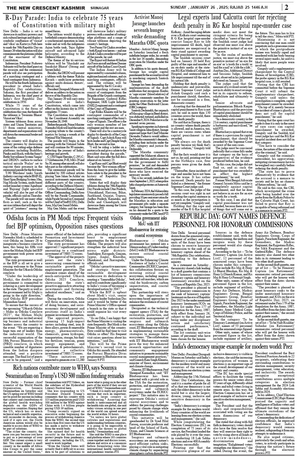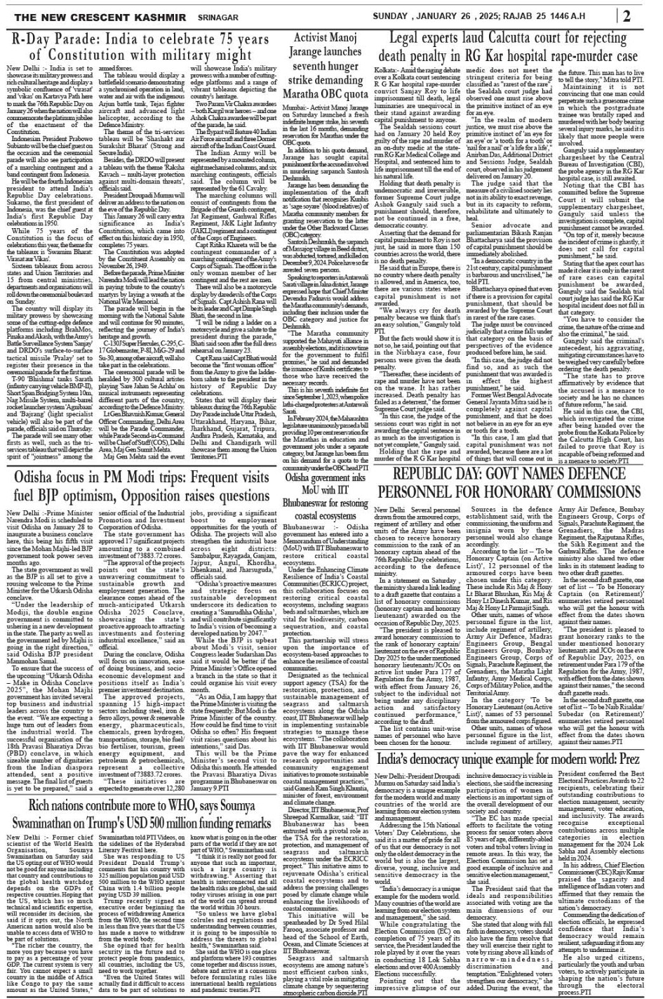 Crescent Kashmir 26-01-2025 Page: 2 January 26, 2025 << First << 2 >> Last >> Page 1Page 2Page 3Page 4Page 5Page 6Page 7Page 8 × Crescent Kashmir 26-01-2025 << First << 2 >> Last >> CK 1CK 2CK 3CK 4CK 5CK 6CK 7CK 8 CK 2