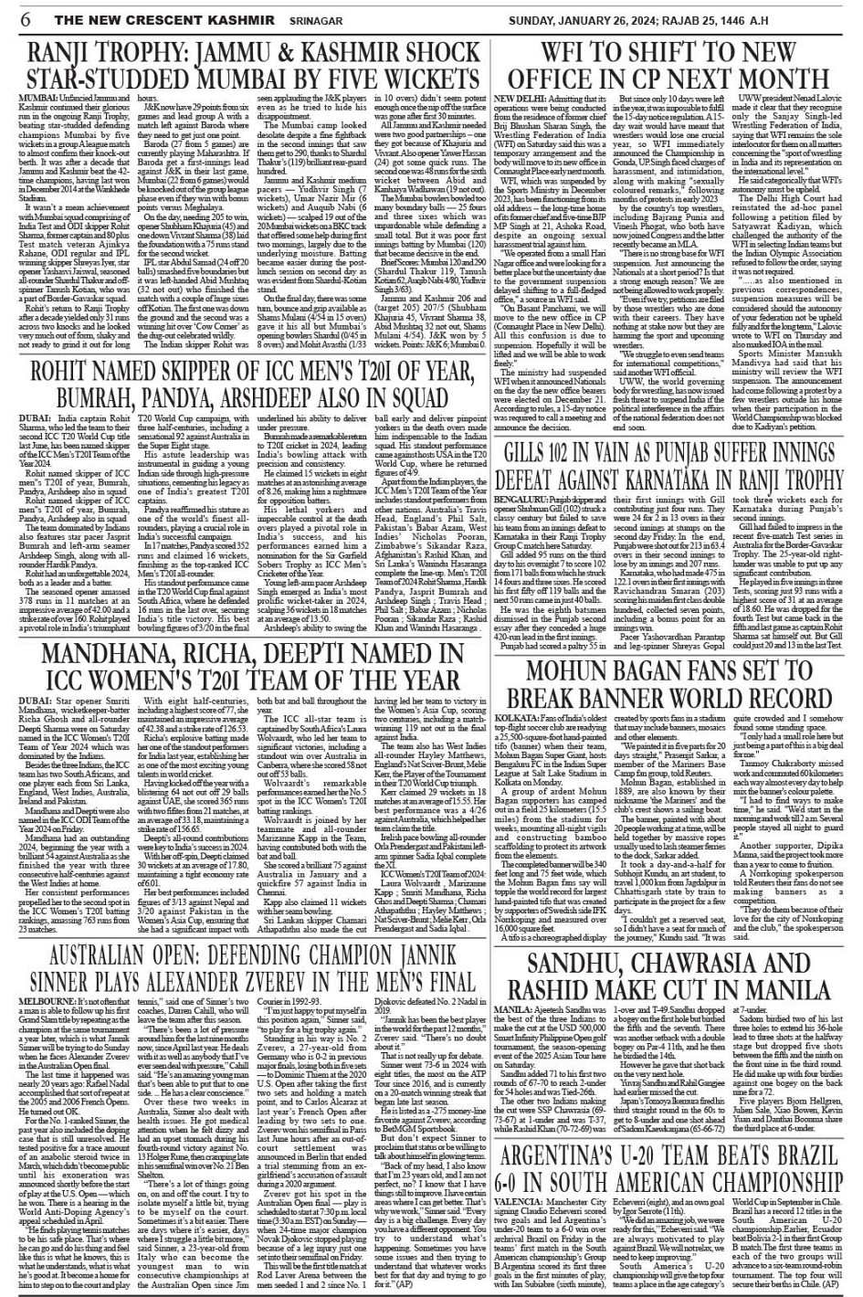 Crescent Kashmir 26-01-2025 Page: 6 January 26, 2025 << First << 6 >> Last >> Page 1Page 2Page 3Page 4Page 5Page 6Page 7Page 8 × Crescent Kashmir 26-01-2025 << First << 6 >> Last >> CK 1CK 2CK 3CK 4CK 5CK 6CK 7CK 8 CK 6