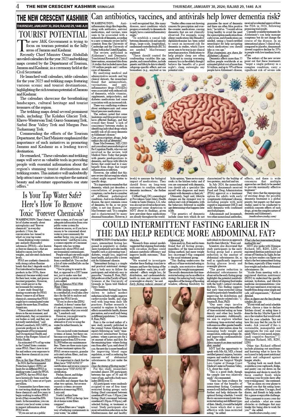 Crescent Kashmir 30-01-2025 Page: 4 January 30, 2025 << First << 4 >> Last >> Page 1Page 2Page 3Page 4Page 5Page 6Page 7 × Crescent Kashmir 30-01-2025 << First << 4 >> Last >> CK 1CK 2CK 3CK 4CK 5CK 6CK 8 CK 4