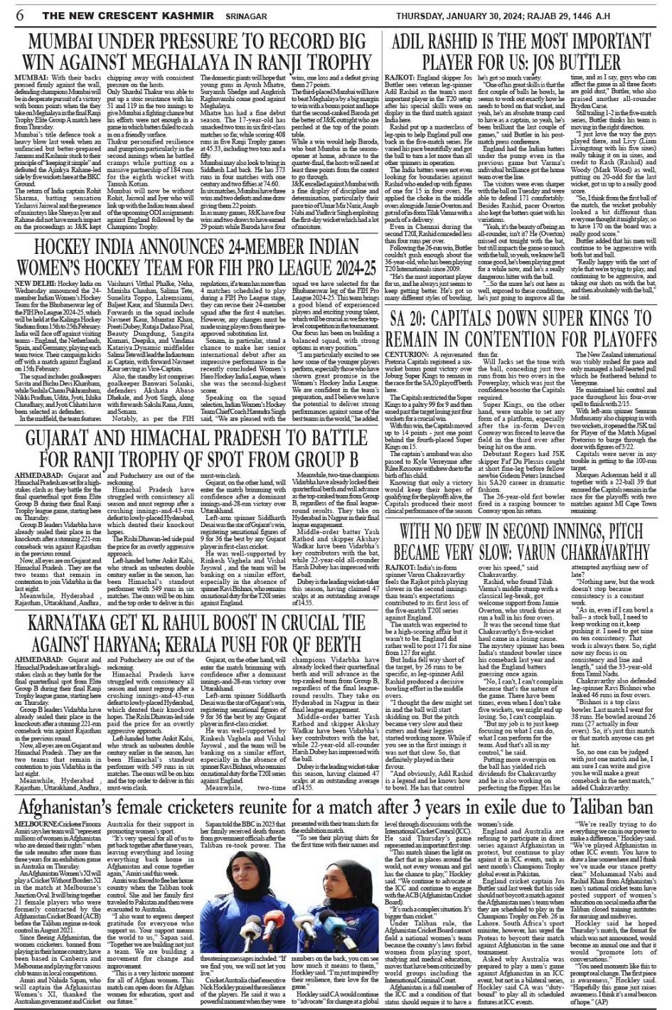 Crescent Kashmir 30-01-2025 Page: 6 January 30, 2025 << First << 6 >> Last >> Page 1Page 2Page 3Page 4Page 5Page 6Page 7 × Crescent Kashmir 30-01-2025 << First << 6 >> Last >> CK 1CK 2CK 3CK 4CK 5CK 6CK 8 CK 6