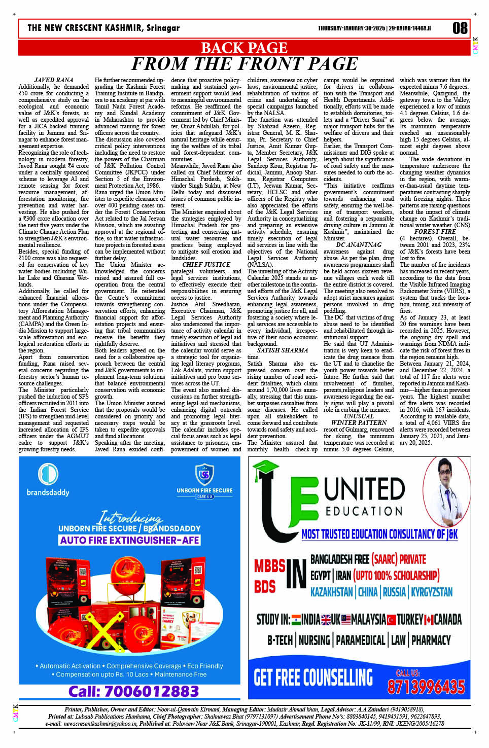 Crescent Kashmir 30-01-2025 Page: 7 January 30, 2025 << First << 7 >> Last >> Page 1Page 2Page 3Page 4Page 5Page 6Page 7 × Crescent Kashmir 30-01-2025 << First << 7 >> Last >> CK 1CK 2CK 3CK 4CK 5CK 6CK 8 CK 8