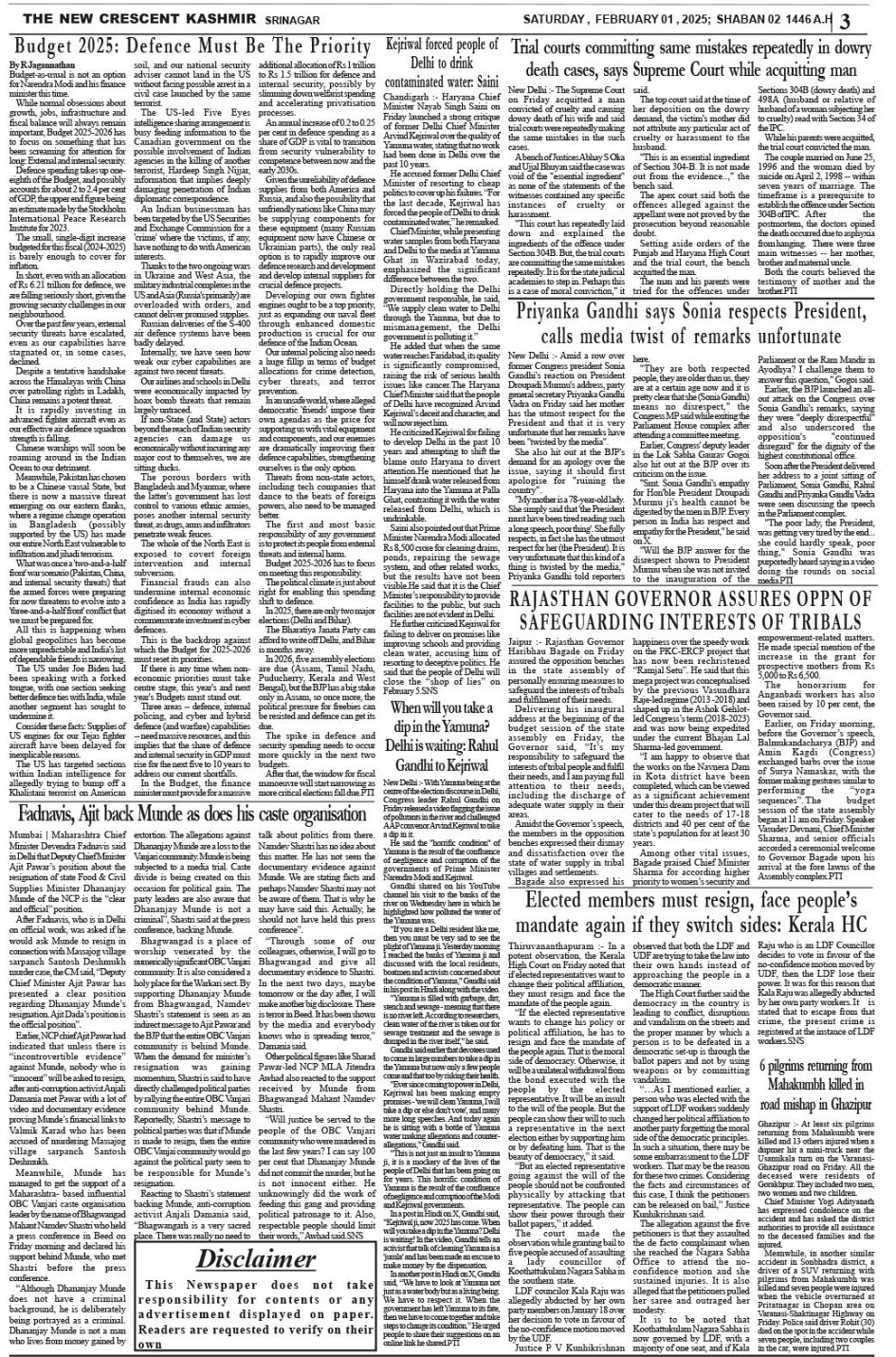 Crescent Kashmir 01-02-2025 Page: 3 February 01, 2025 << First << 3 >> Last >> Page 1Page 2Page 3Page 4Page 5Page 6Page 7Page 8 × Crescent Kashmir 01-02-2025 << First << 3 >> Last >> CK 1CK 2CK 3CK 4CK 5CK 6CK 7CK 8 CK 3