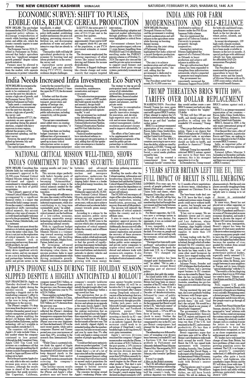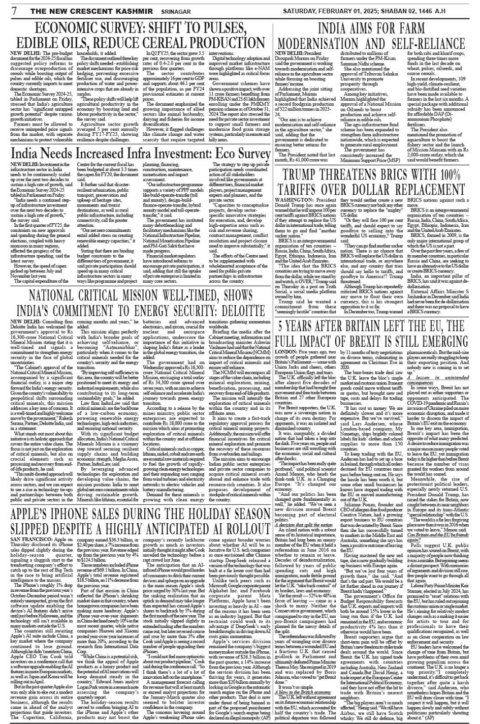Crescent Kashmir 01-02-2025 Page: 7 February 01, 2025 << First << 7 >> Last >> Page 1Page 2Page 3Page 4Page 5Page 6Page 7Page 8 × Crescent Kashmir 01-02-2025 << First << 7 >> Last >> CK 1CK 2CK 3CK 4CK 5CK 6CK 7CK 8 CK 7