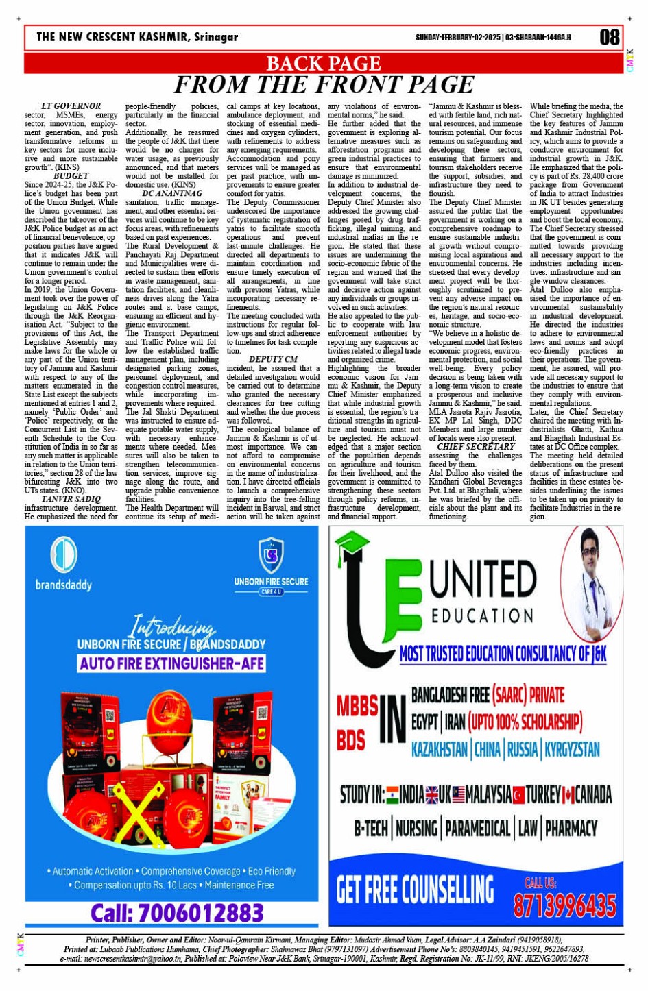 Crescent Kashmir 02-02-2025 Page: 8 February 02, 2025 << First << 8 >> Last >> Page 1Page 2Page 3Page 4Page 5Page 6Page 7Page 8 × Crescent Kashmir 02-02-2025 << First << 8 >> Last >> CK 1CK 2CK 3CK 4CK 5CK 6CK 7CK 8 CK 8