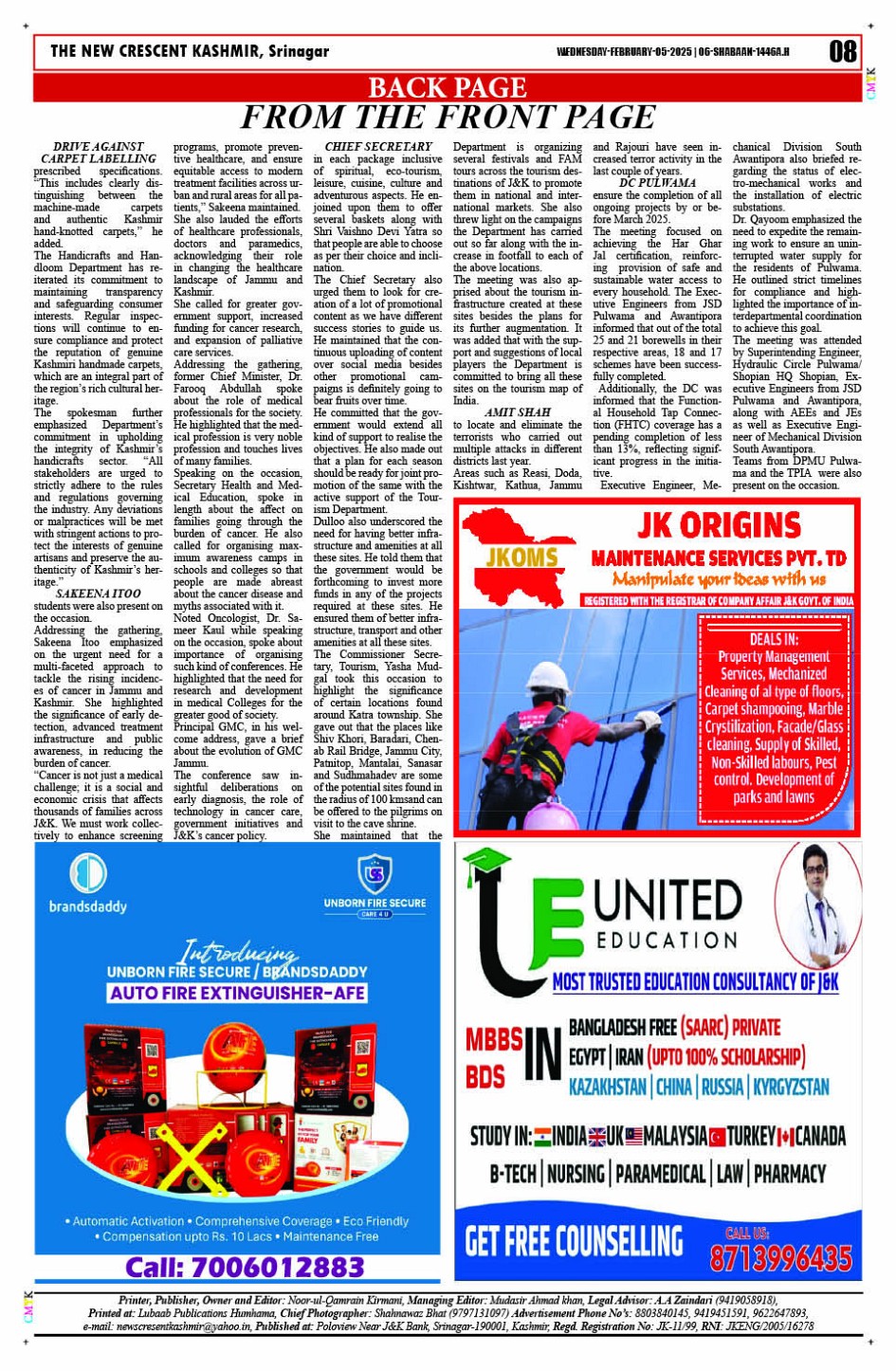 Crescent Kashmir 05-02-2025 Page: 8 February 05, 2025 << First << 8 >> Last >> Page 1Page 2Page 3Page 4Page 5Page 6Page 7Page 8 × Crescent Kashmir 05-02-2025 << First << 8 >> Last >> CK 1CK 2CK 3CK 4CK 5CK 6CK 7CK 8 CK 8