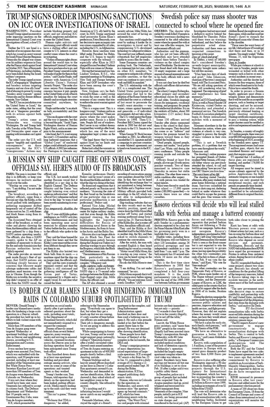 Crescent Kashmir 08-02-2025 Page: 5 February 08, 2025 << First << 5 >> Last >> Page 1Page 2Page 3Page 4Page 5Page 6Page 7Page 8 × Crescent Kashmir 08-02-2025 << First << 5 >> Last >> CK 1CK 2CK 3CK 4CK 5CK 6CK 7CK 8 CK 5