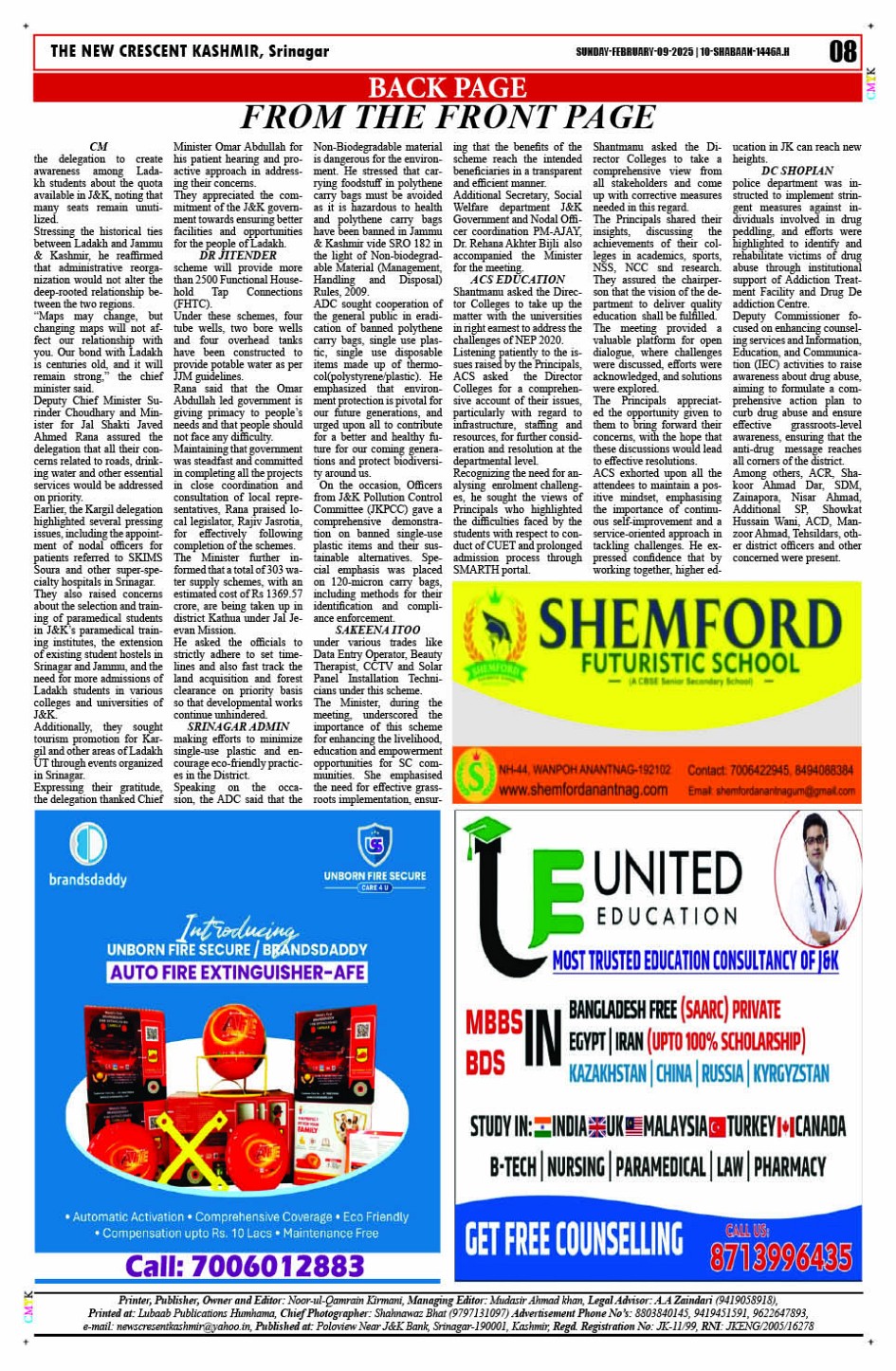 Crescent Kashmir 09-02-2025 Page: 8 February 09, 2025 << First << 8 >> Last >> Page 1Page 2Page 3Page 4Page 5Page 6Page 7Page 8 × Crescent Kashmir 09-02-2025 << First << 8 >> Last >> CK 1CK 2CK 3CK 4CK 5CK 6CK 7CK 8 CK 8
