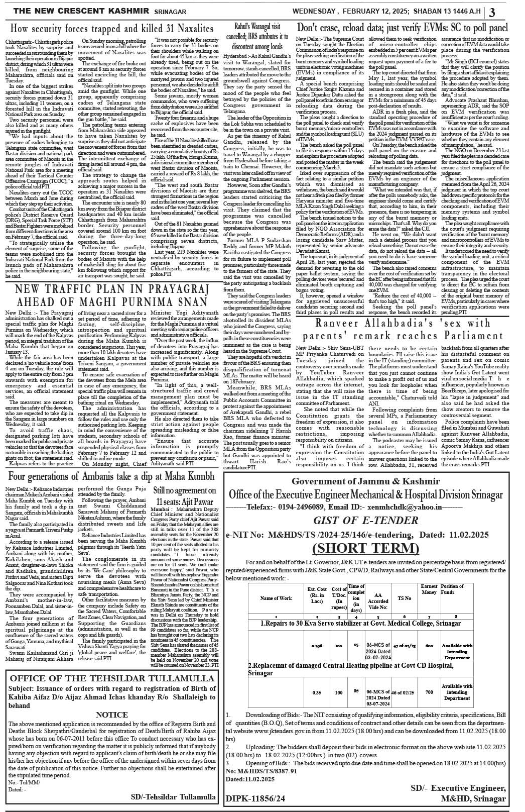 Crescent Kashmir 12-02-2025 Page: 3 February 12, 2025 << First << 3 >> Last >> Page 1Page 2Page 3Page 4Page 5Page 6Page 7Page 8 × Crescent Kashmir 12-02-2025 << First << 3 >> Last >> CK 1CK 2CK 3CK 4CK 5CK 6CK 7CK 8 CK 3