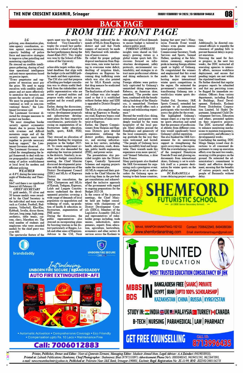Crescent Kashmir 14-02-2025 Page: 8 February 14, 2025 << First << 8 >> Last >> Page 1Page 2Page 3Page 4Page 5Page 6Page 7Page 8 × Crescent Kashmir 14-02-2025 << First << 8 >> Last >> CK 1CK 2CK 3CK 4CK 5CK 6CK 7CK 8 CK 8