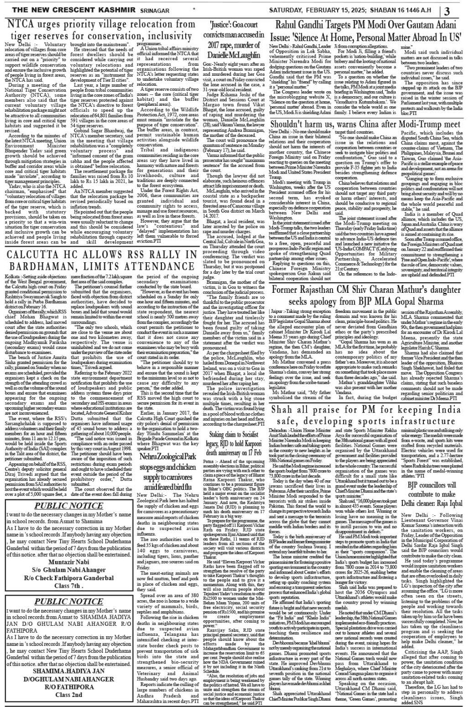 Crescent Kashmir 15-02-2025 Page: 3 February 15, 2025 << First << 3 >> Last >> Page 1Page 2Page 3Page 4Page 5Page 6Page 7Page 8 × Crescent Kashmir 15-02-2025 << First << 3 >> Last >> CK 1CK 2CK 3CK 4CK 5CK 6CK 7CK 8 CK 3