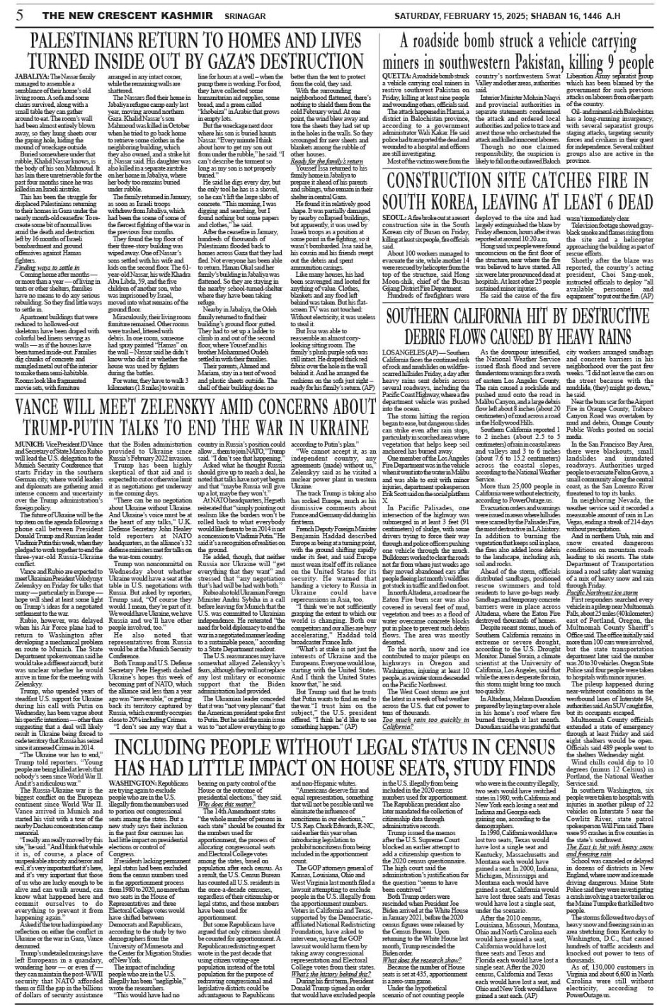 Crescent Kashmir 15-02-2025 Page: 5 February 15, 2025 << First << 5 >> Last >> Page 1Page 2Page 3Page 4Page 5Page 6Page 7Page 8 × Crescent Kashmir 15-02-2025 << First << 5 >> Last >> CK 1CK 2CK 3CK 4CK 5CK 6CK 7CK 8 CK 5