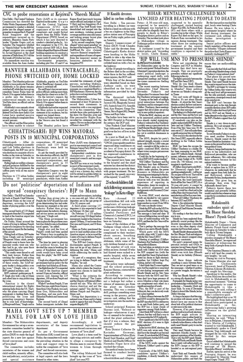 Crescent Kashmir 16-02-2025 Page: 2 February 16, 2025 << First << 2 >> Last >> Page 1Page 2Page 3Page 4Page 5Page 6Page 7Page 8 × Crescent Kashmir 16-02-2025 << First << 2 >> Last >> CK 1CK 2CK 3CK 4CK 5CK 6CK 7CK 8 CK 2