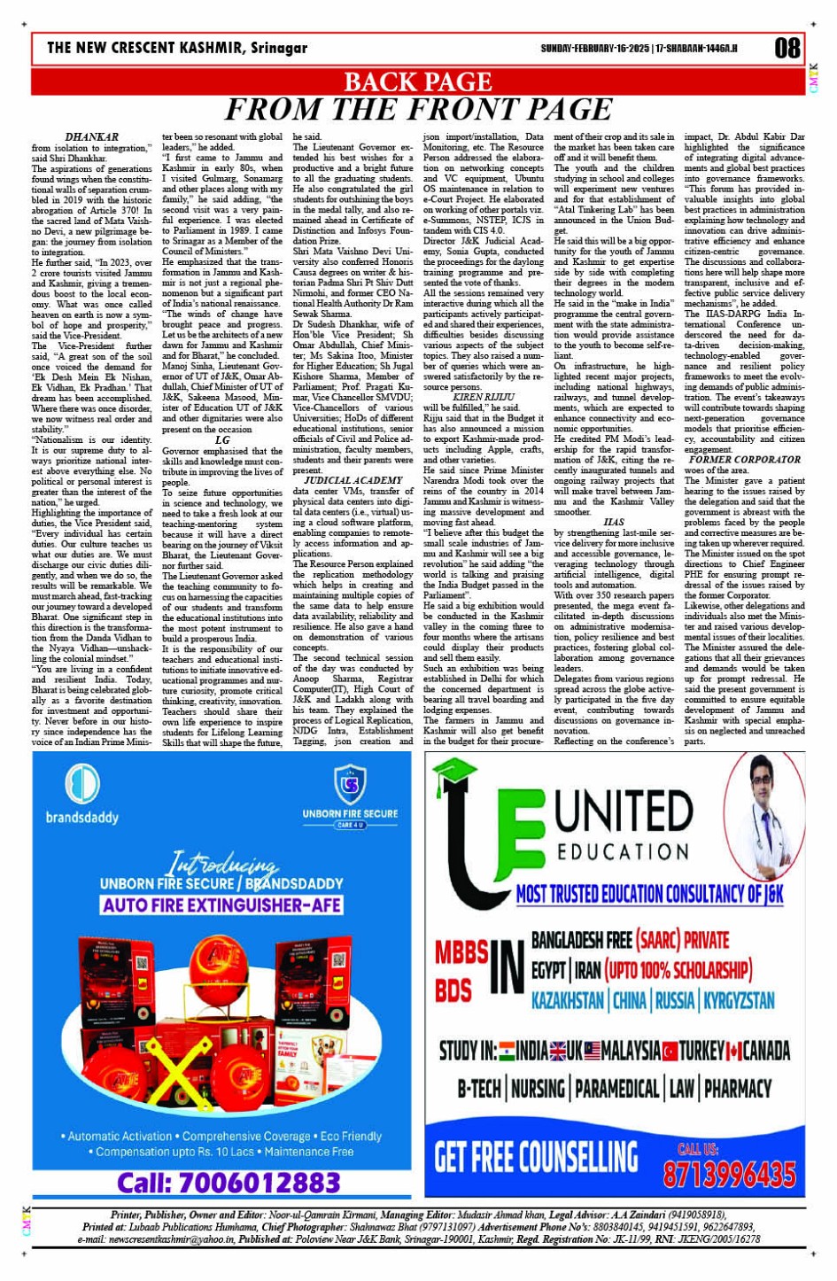 Crescent Kashmir 16-02-2025 Page: 8 February 16, 2025 << First << 8 >> Last >> Page 1Page 2Page 3Page 4Page 5Page 6Page 7Page 8 × Crescent Kashmir 16-02-2025 << First << 8 >> Last >> CK 1CK 2CK 3CK 4CK 5CK 6CK 7CK 8 CK 8