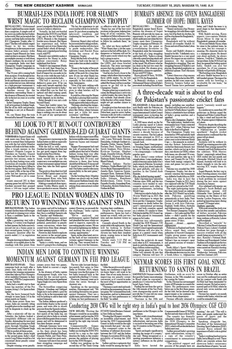 Crescent Kashmir 18-02-2025 Page: 6 February 18, 2025 << First << 6 >> Last >> Page 1Page 2Page 3Page 4Page 5Page 6Page 7Page 8 × Crescent Kashmir 18-02-2025 << First << 6 >> Last >> CK 1CK 2CK 3CK 4CK 5CK 6CK 7CK 8 CK 6