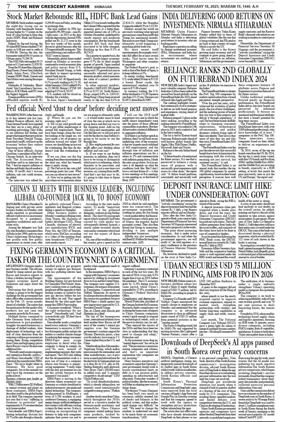 Crescent Kashmir 18-02-2025 Page: 7 February 18, 2025 << First << 7 >> Last >> Page 1Page 2Page 3Page 4Page 5Page 6Page 7Page 8 × Crescent Kashmir 18-02-2025 << First << 7 >> Last >> CK 1CK 2CK 3CK 4CK 5CK 6CK 7CK 8 CK 7