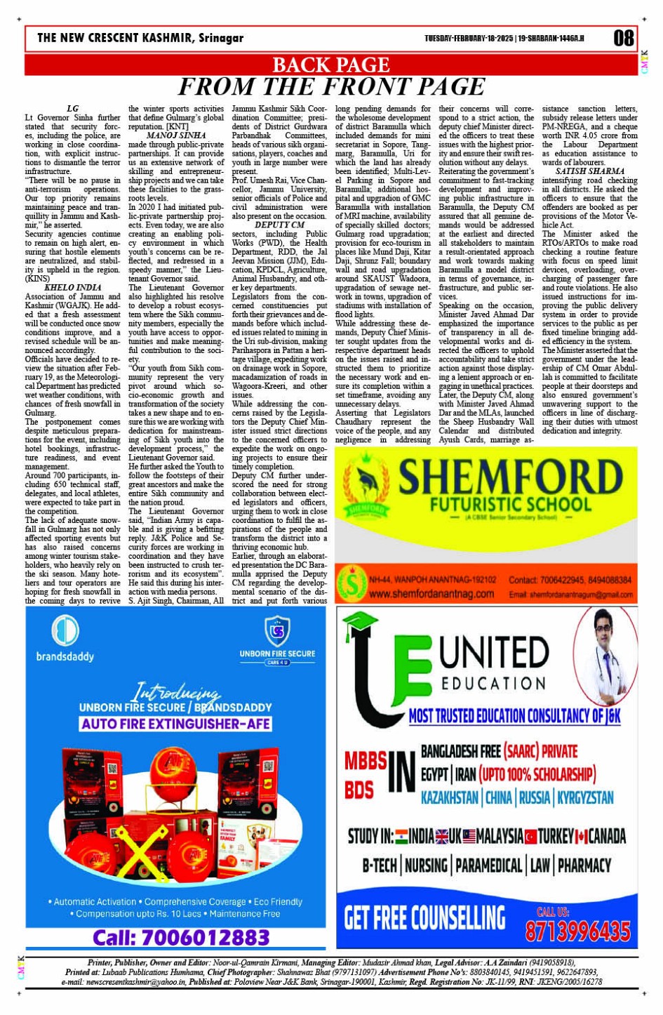 Crescent Kashmir 18-02-2025 Page: 8 February 18, 2025 << First << 8 >> Last >> Page 1Page 2Page 3Page 4Page 5Page 6Page 7Page 8 × Crescent Kashmir 18-02-2025 << First << 8 >> Last >> CK 1CK 2CK 3CK 4CK 5CK 6CK 7CK 8 CK 8