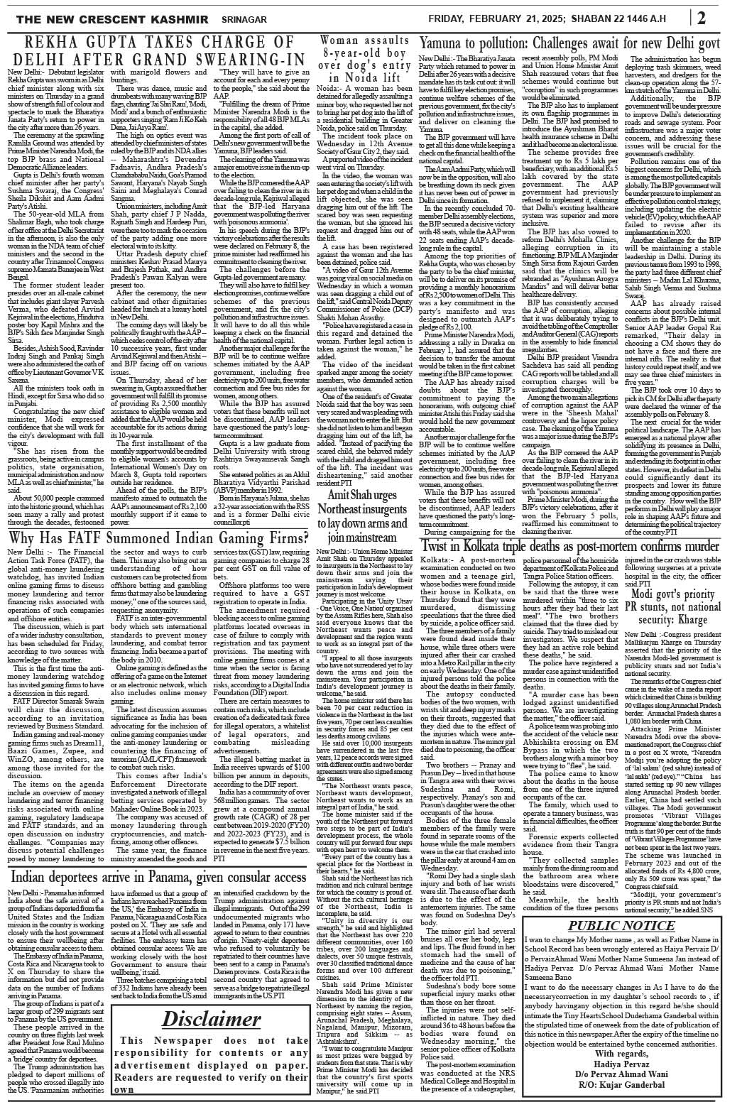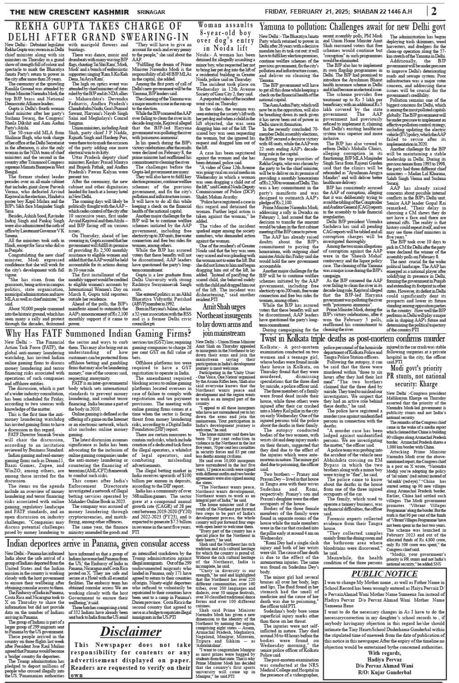 Crescent Kashmir 21-02-2025 Page: 2 February 21, 2025 << First << 2 >> Last >> Page 1Page 2Page 3Page 4Page 5Page 6Page 7Page 8 × Crescent Kashmir 21-02-2025 << First << 2 >> Last >> CK 1CK 2CK 3CK 4CK 5CK 6CK 7CK 8 CK 2
