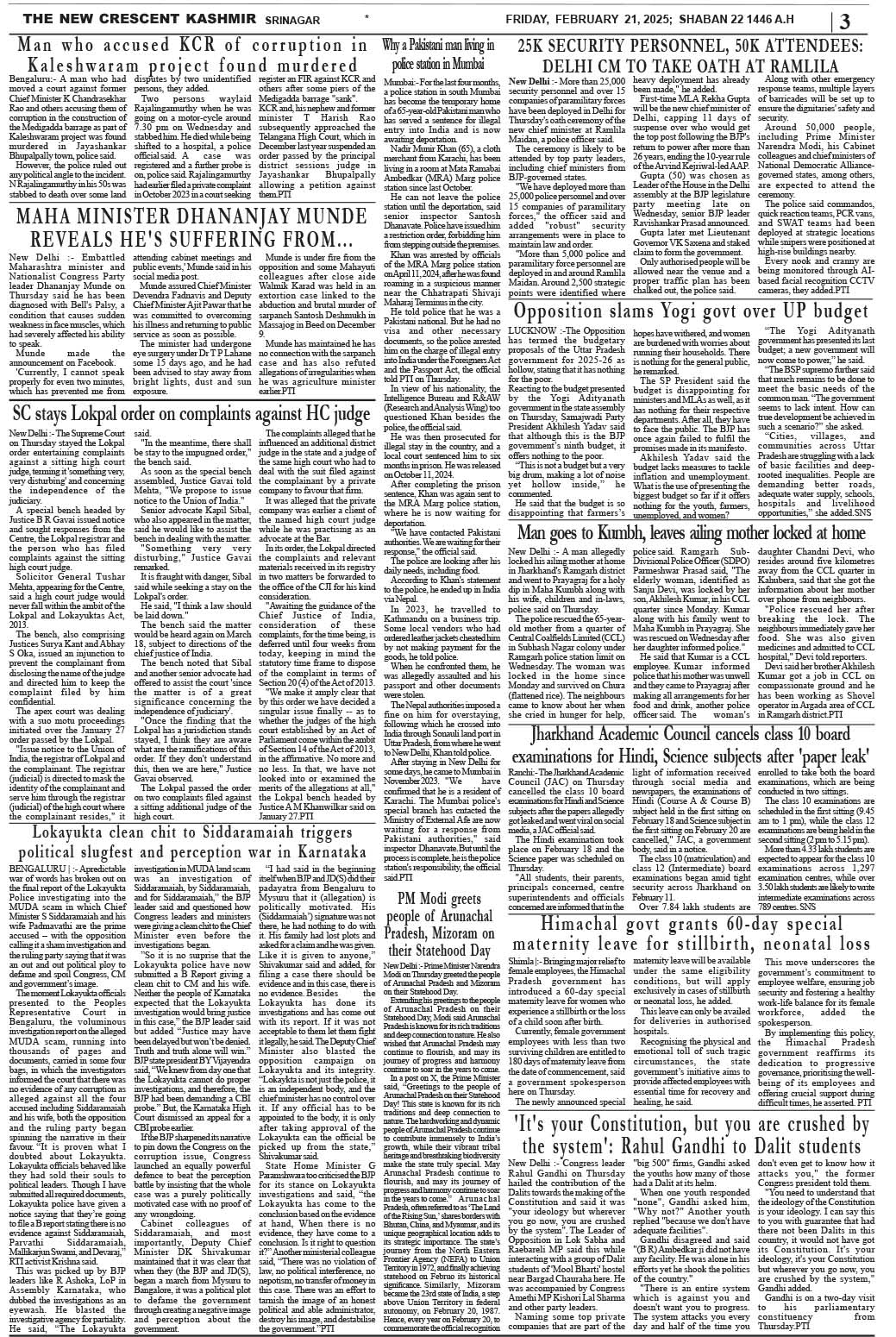Crescent Kashmir 21-02-2025 Page: 3 February 21, 2025 << First << 3 >> Last >> Page 1Page 2Page 3Page 4Page 5Page 6Page 7Page 8 × Crescent Kashmir 21-02-2025 << First << 3 >> Last >> CK 1CK 2CK 3CK 4CK 5CK 6CK 7CK 8 CK 3