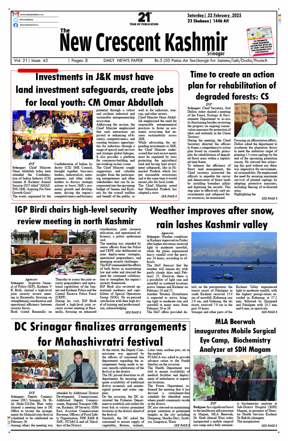 Crescent Kashmir 22-02-2025 February 22, 2025 << First << 1 >> Last >> Page 1Page 2Page 3Page 4Page 5Page 6Page 7Page 8 × Crescent Kashmir 22-02-2025 << First << 1 >> Last >> CK 1CK 2CK 3CK 4CK 5CK 6CK 7CK 8 CK 1