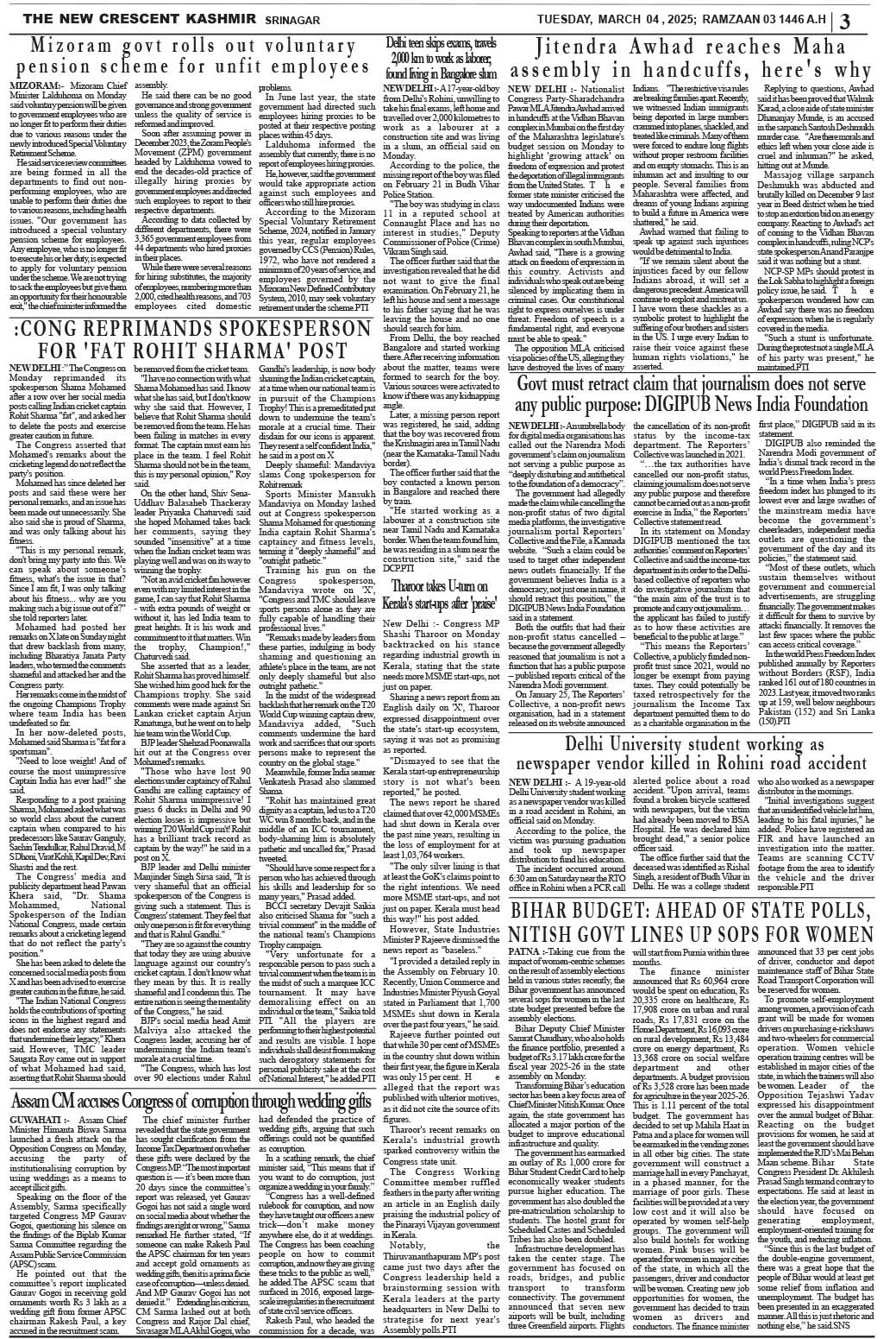 Crescent Kashmir 04-03-2025 Page: 3 March 04, 2025 << First << 3 >> Last >> Page 1Page 2Page 3Page 4Page 5Page 6Page 7Page 8 × Crescent Kashmir 04-03-2025 << First << 3 >> Last >> CK 1CK 2CK 3CK 4CK 5CK 6CK 7CK 8 CK 3