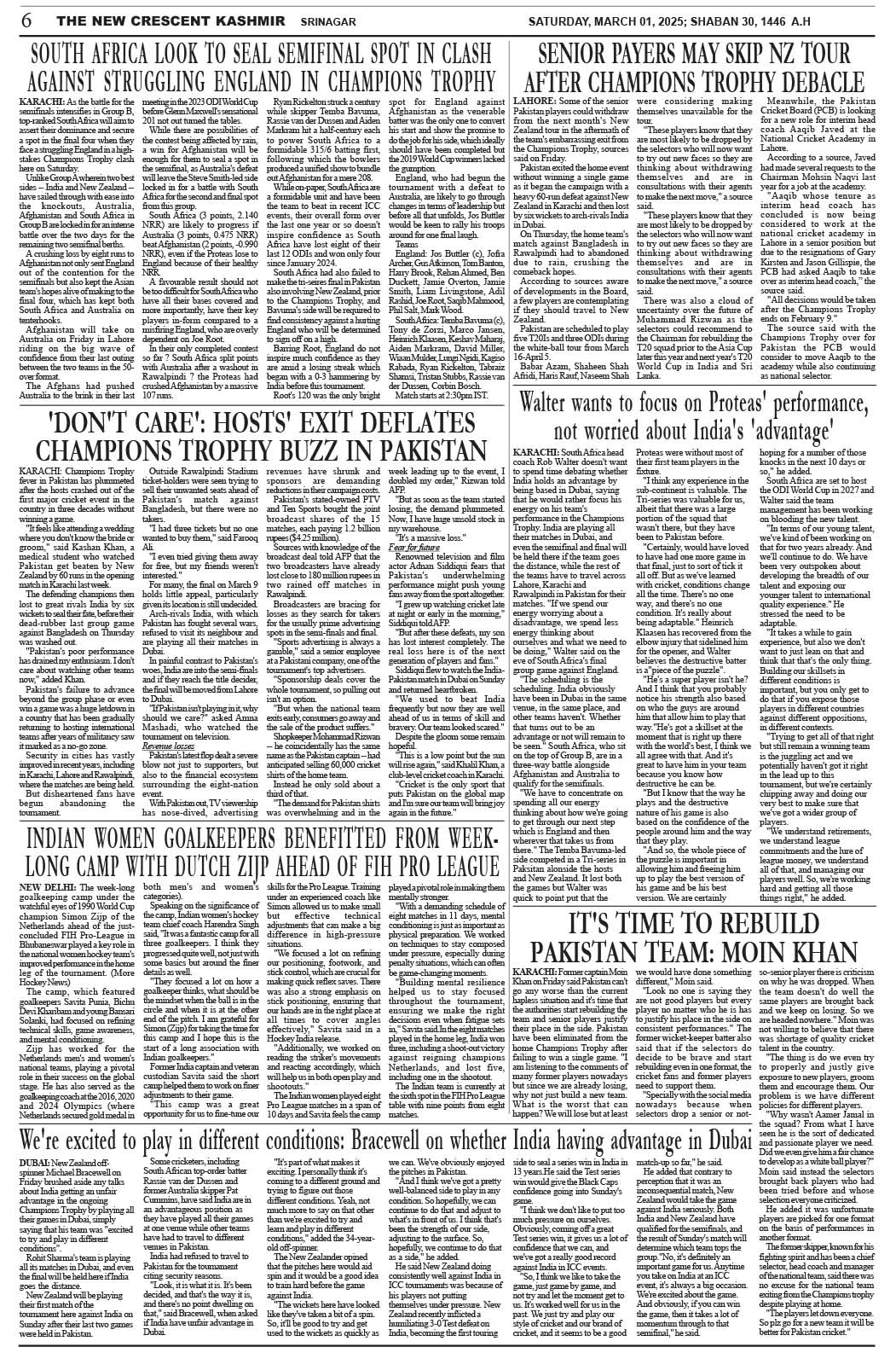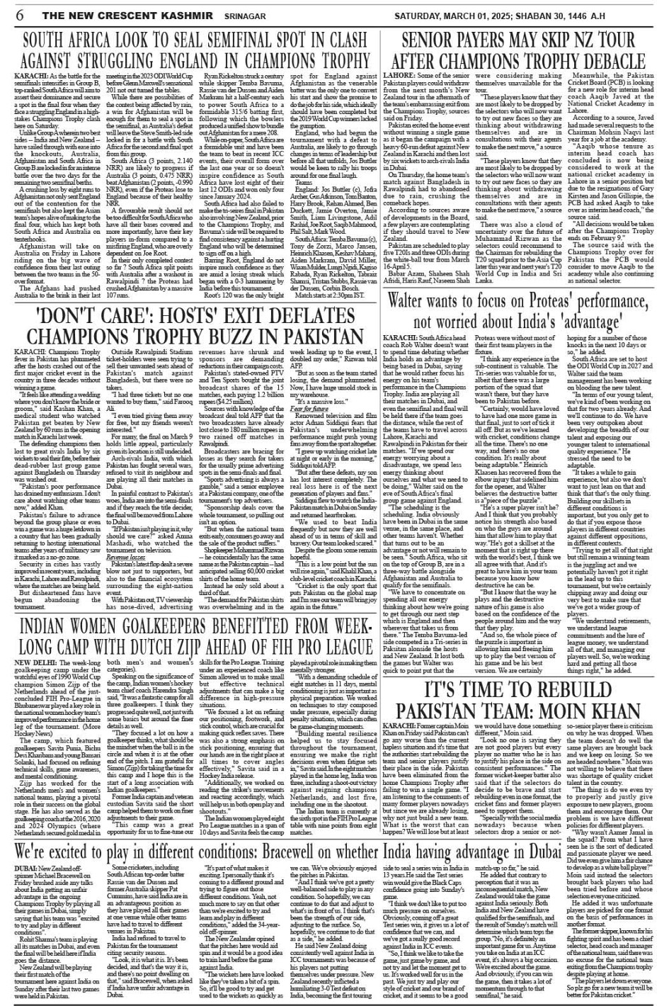 Crescent Kashmir 01-03-2025 Page: 6 March 01, 2025 << First << 6 >> Last >> Page 1Page 2Page 3Page 4Page 5Page 6Page 7Page 8 × Crescent Kashmir 01-03-2025 << First << 6 >> Last >> CK 1CK 2CK 3CK 4CK 5CK 6CK 7CK 8 CK 6